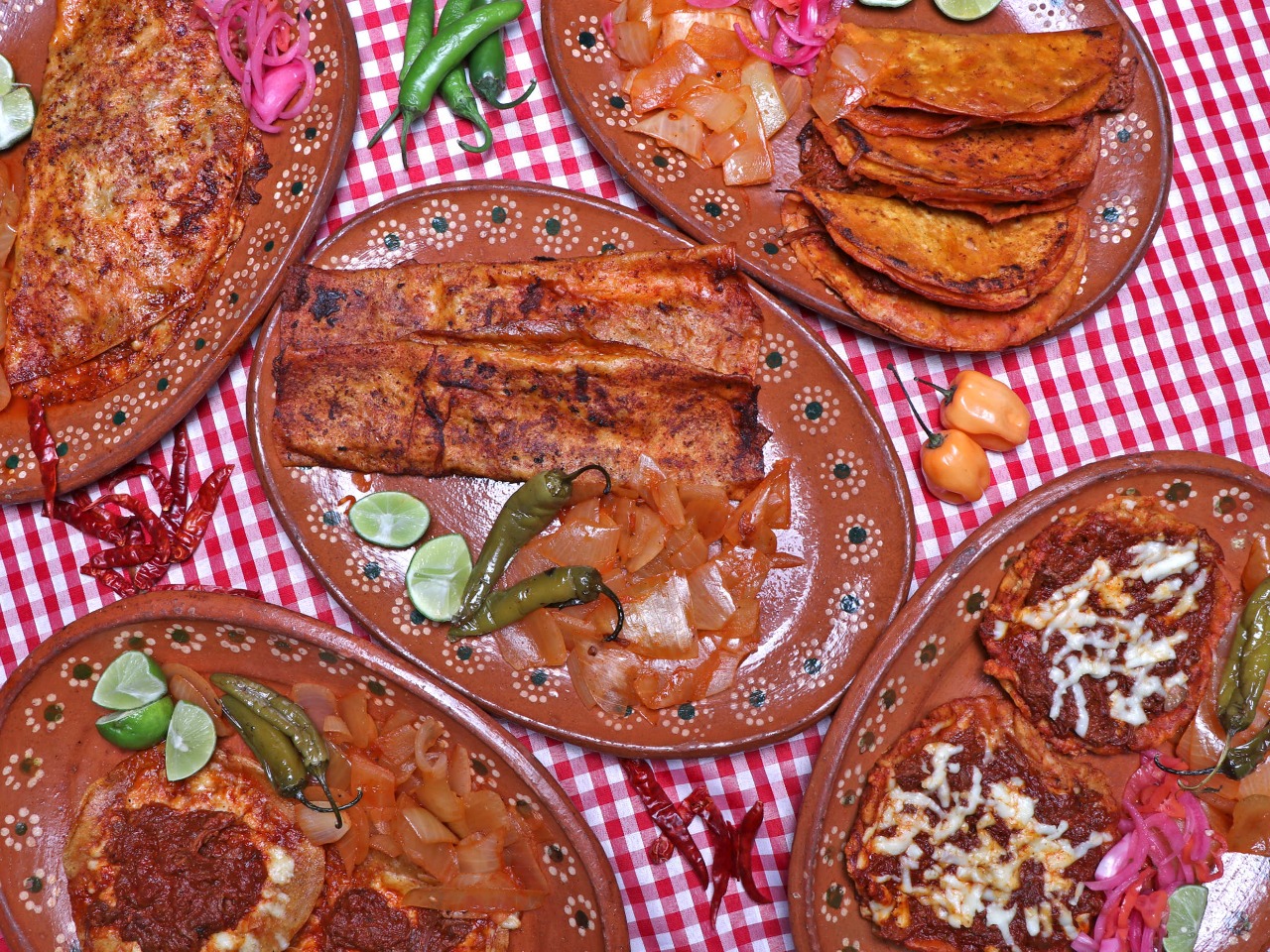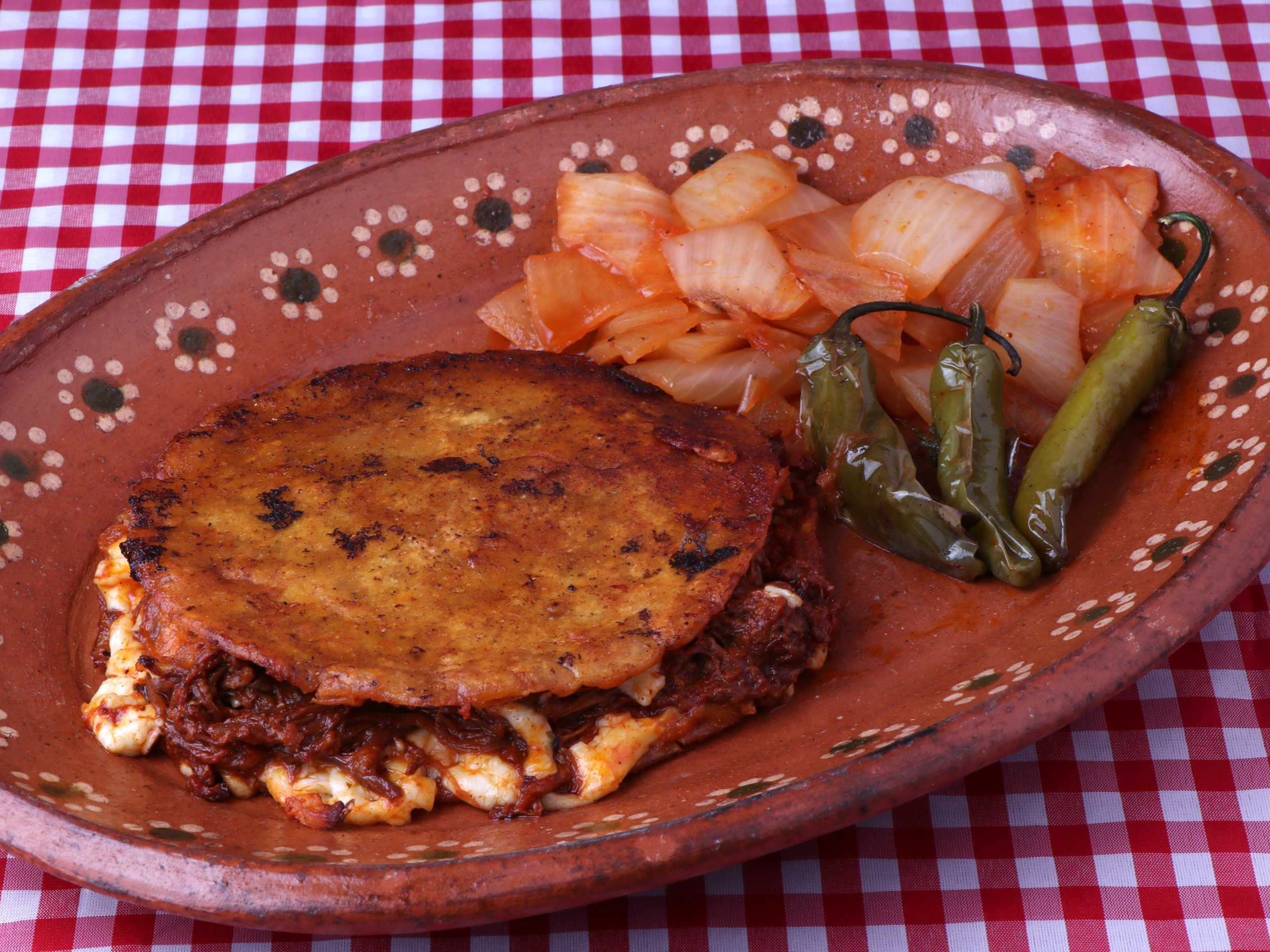 5 Quesadillas de Maiz acompañadas de cebollas asadas limones y salsa