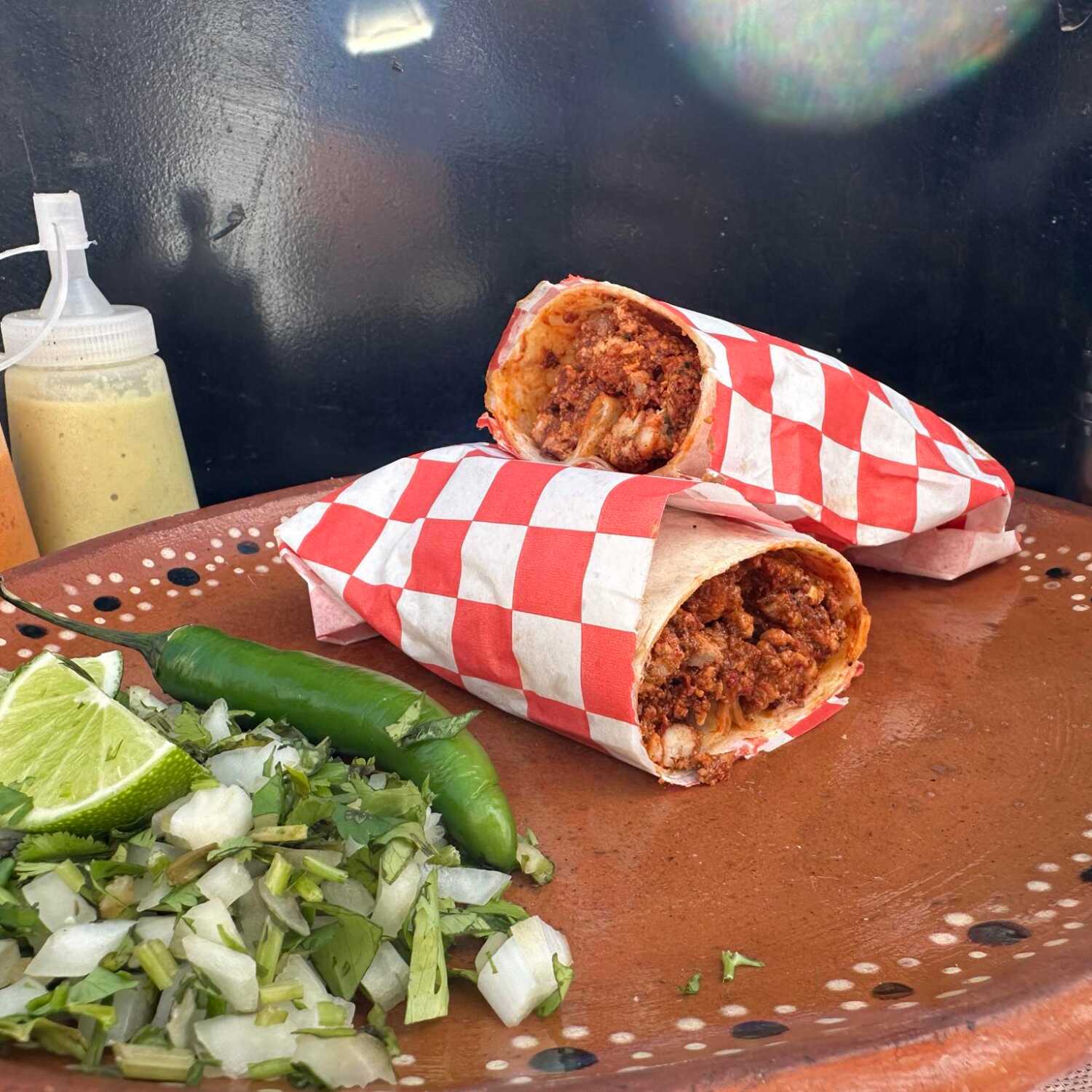 Burrito a la diabla Acompañado de cebollas asadas, limones y salsa