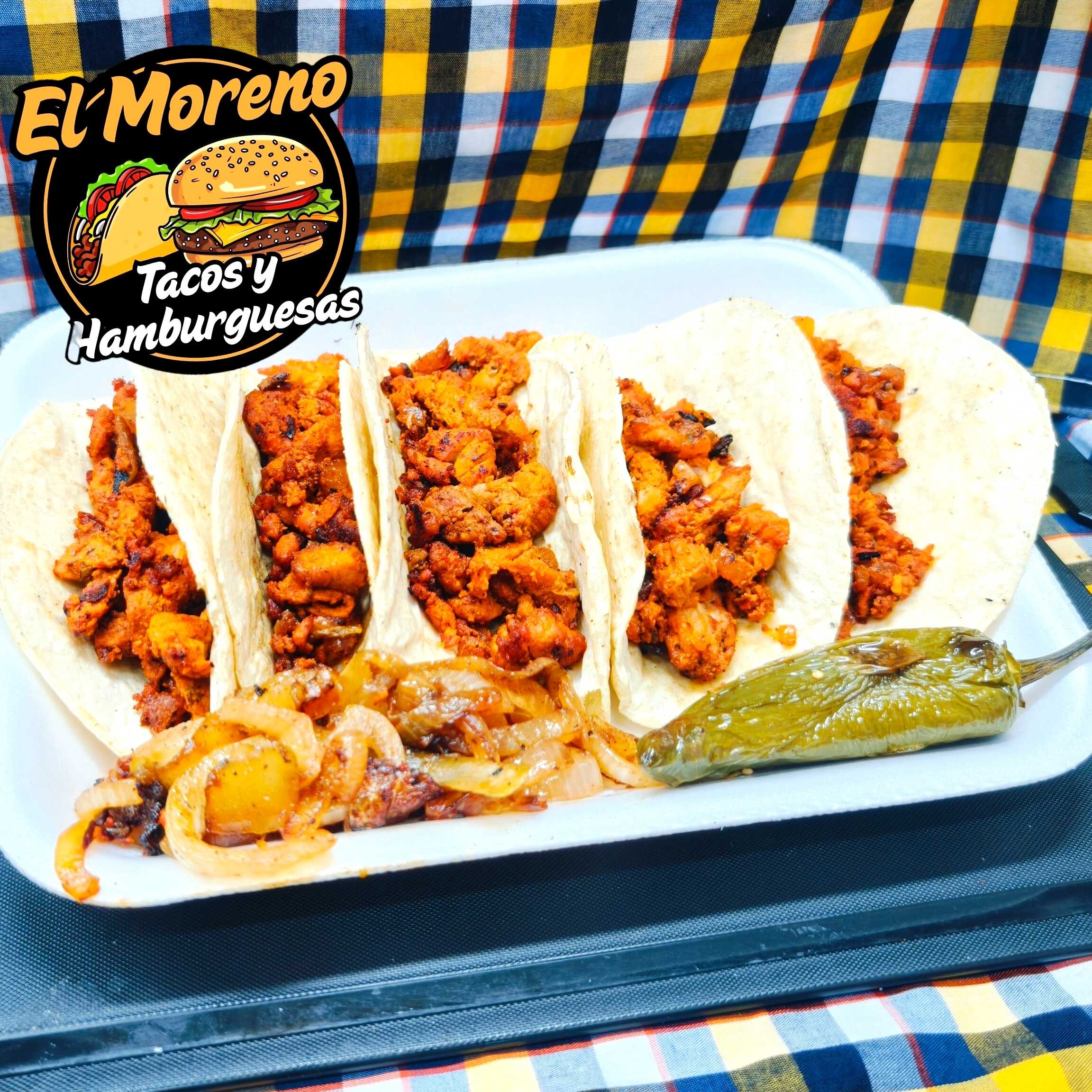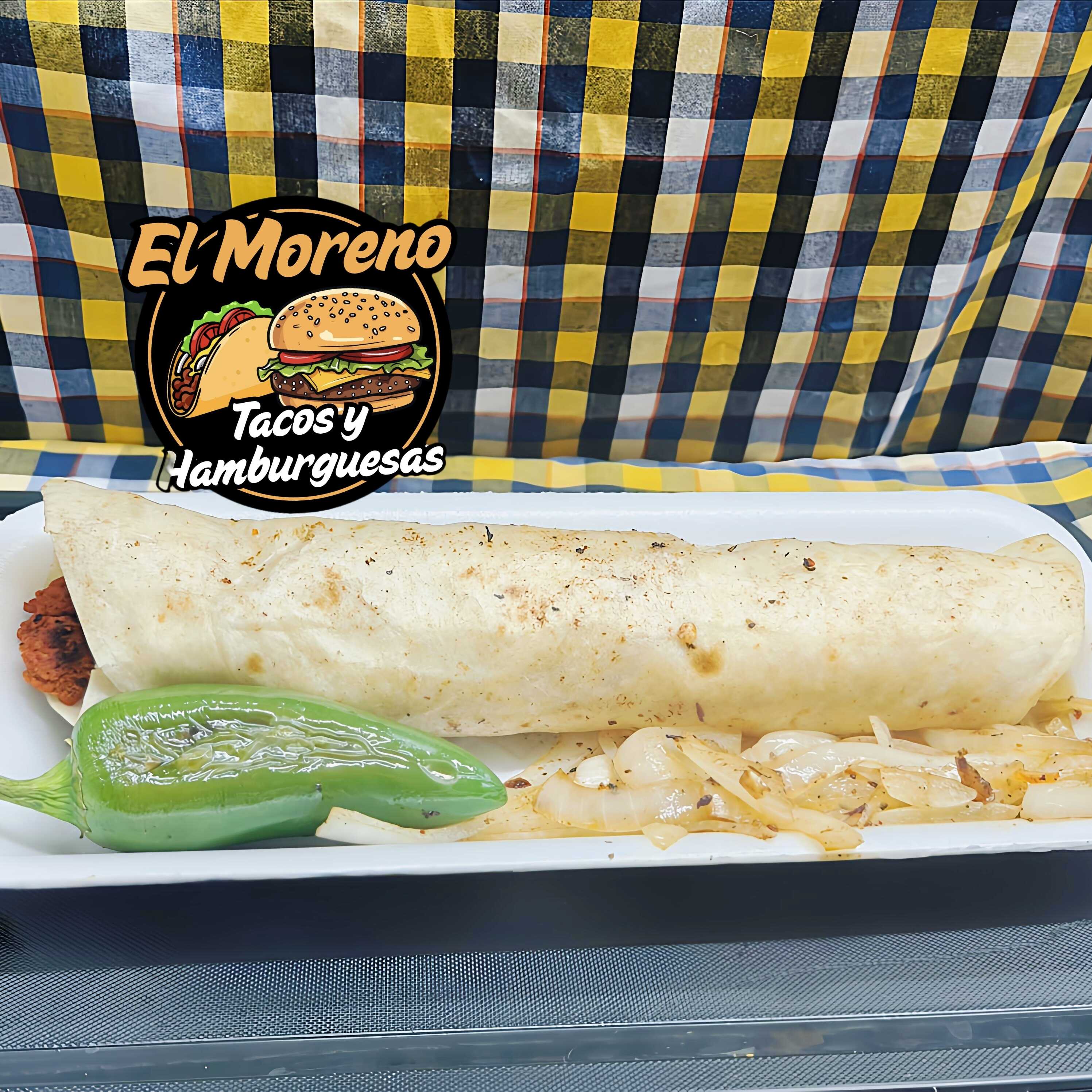 Tortilla de harina más porción de carne tipo pastor con mayonesa más cebollita y chile toreado