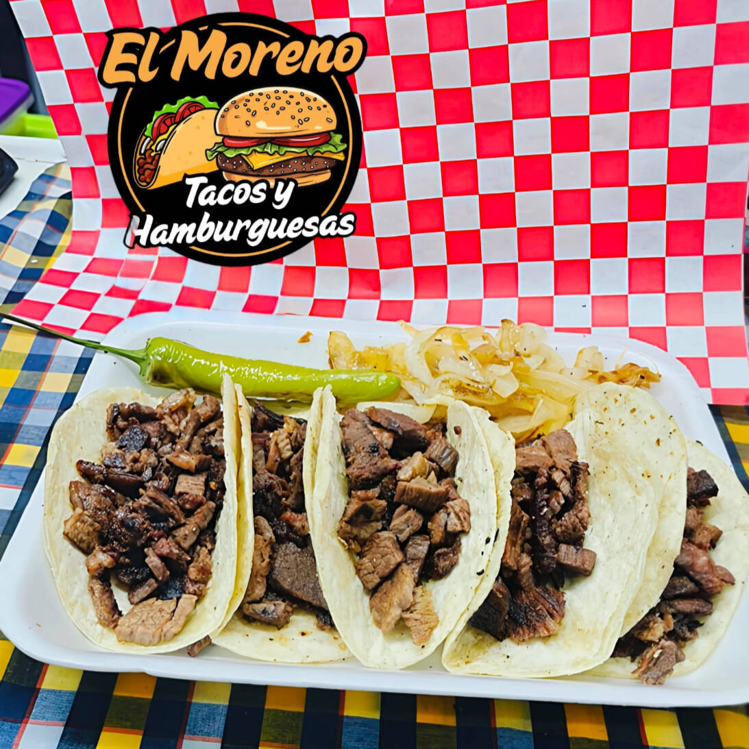 Tortilla de maíz con una porción de carne asada al carbon con un exquisito sabor acompañada de cebollita y chile toreado.