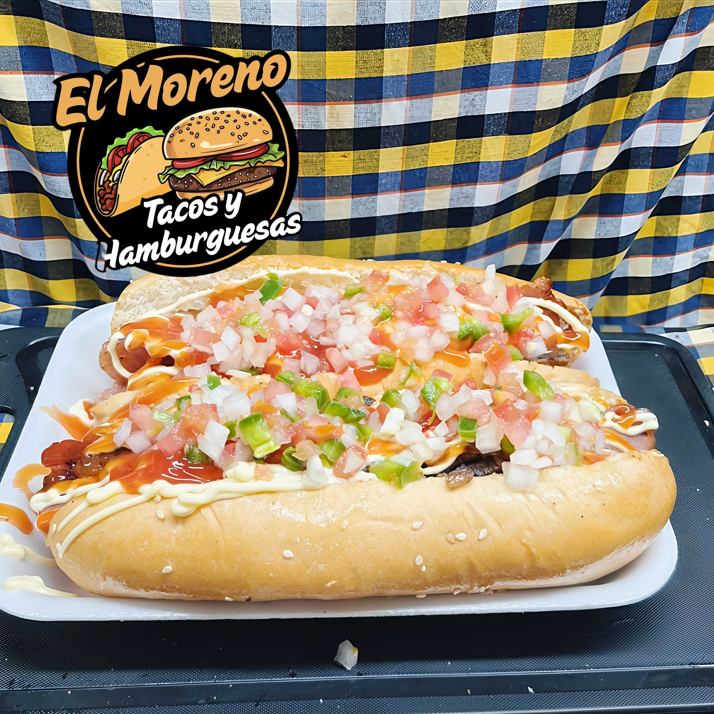 Salchicha, Tocino, Mayonesa, Catsup, Mostaza, Pico de gallo o rajas.