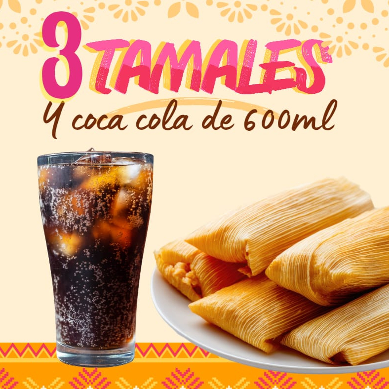 Tamal de Cerdo Rojo*2 + Tamal de Puerco Verde*1 + Coca Cola 600 Ml*1