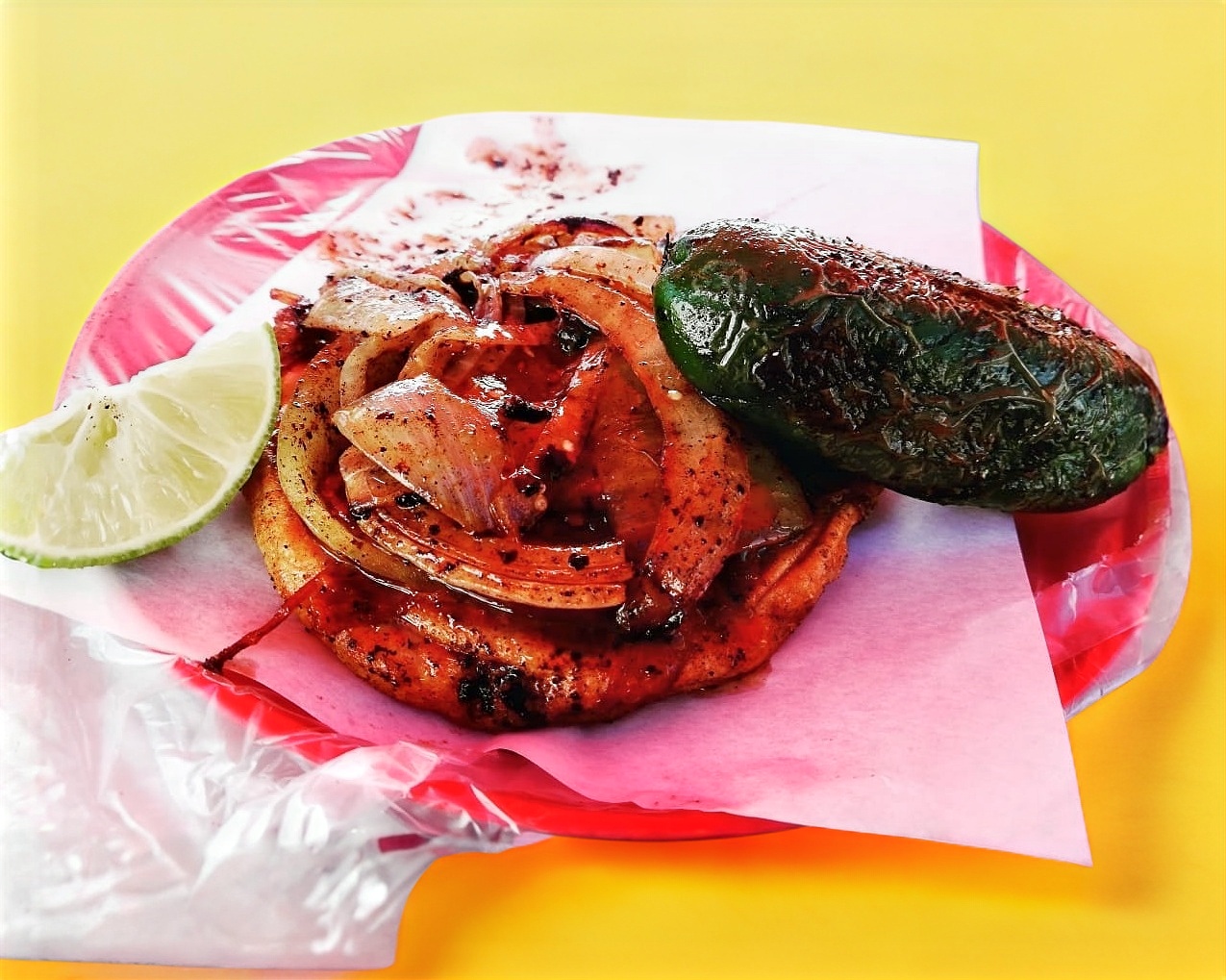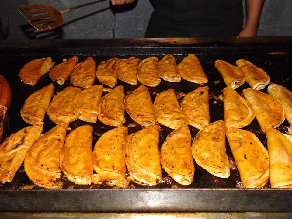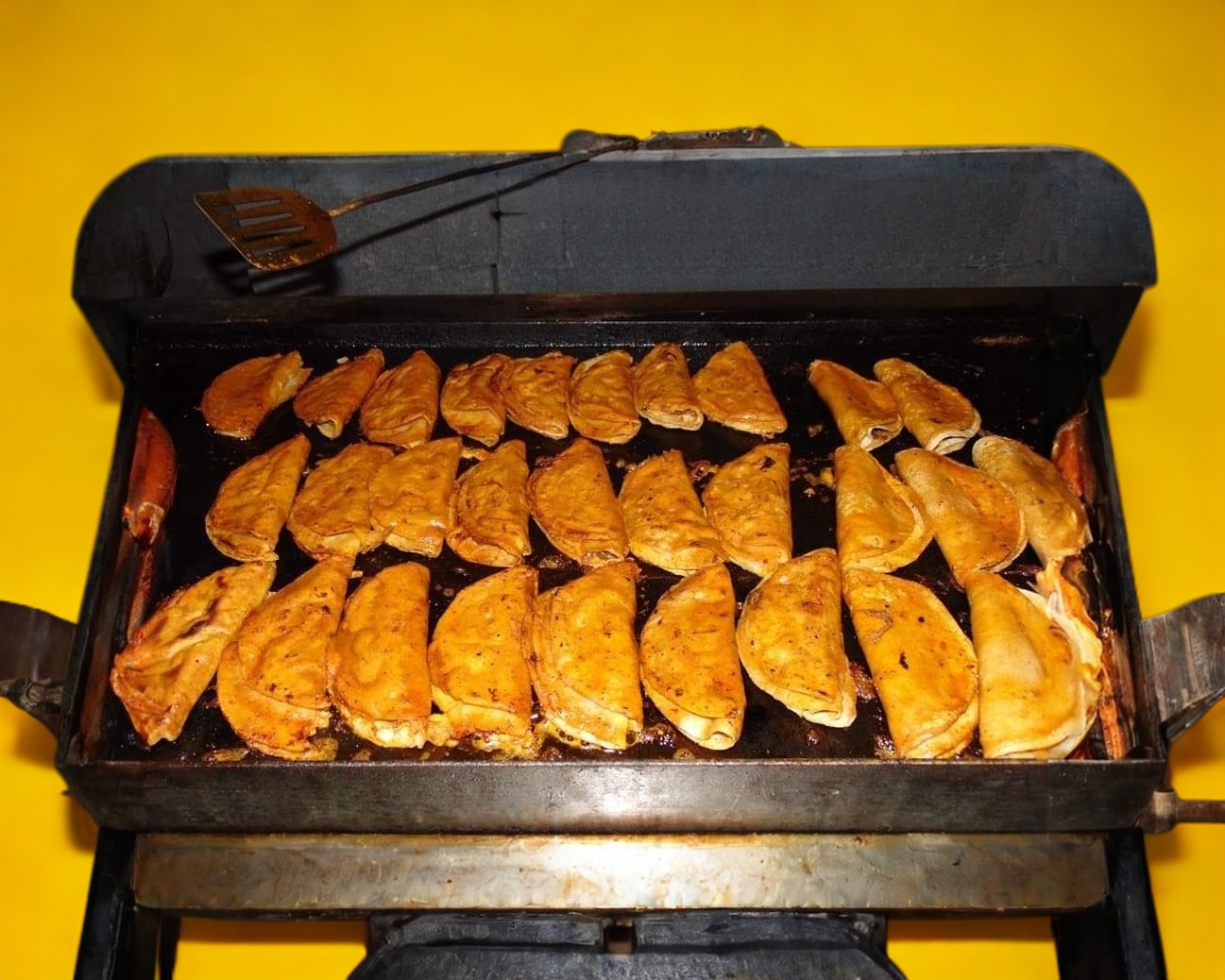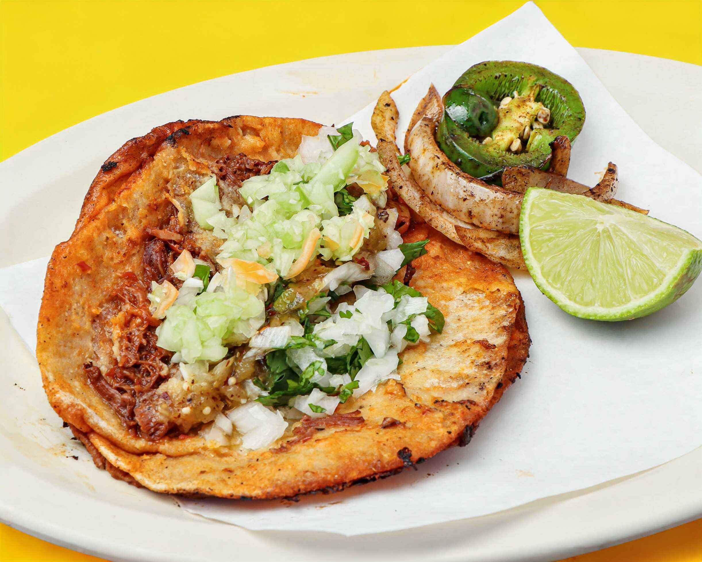 Tortilla de harina, con queso y barbacoa doblada por la mitad.
