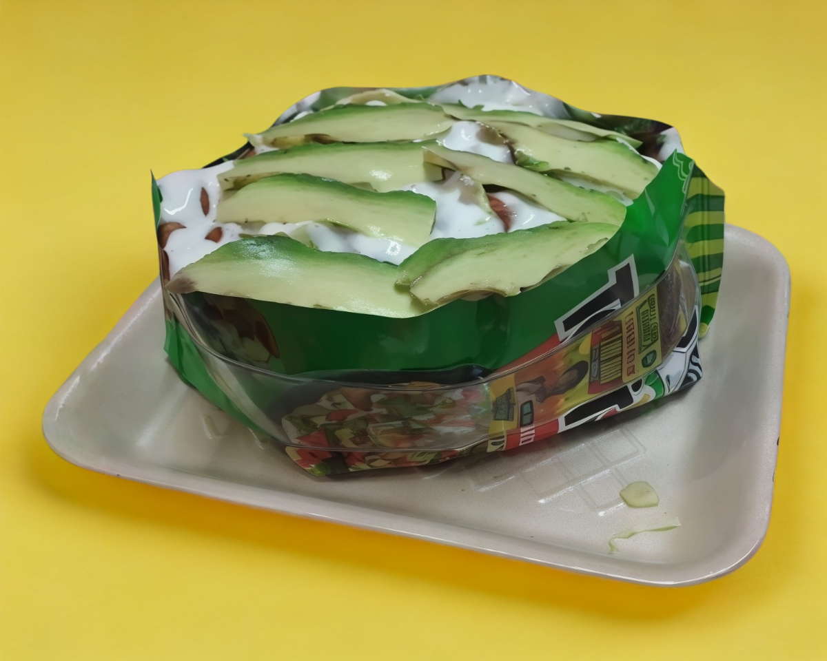Preparado con lechuga, pepino, cueritos, salsa especial de la casa, aguacate, camarón, maggi, crema y limon.