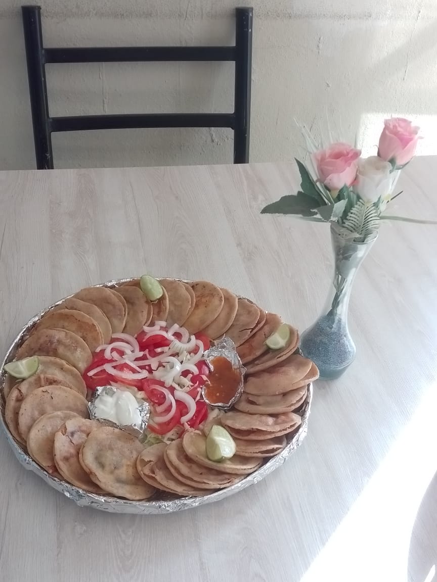 Se envían 6 piezas. 2 papa, 2 frijol 2 deshebrada.