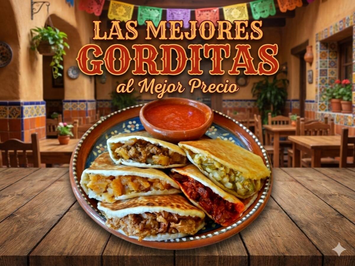 ¡Tus Favoritas! 1 Gordita Picadillo Verde + 1 Gordita Picadillo Rojo + 2 Gordita Chicharrón Prensado + 2 Gordita Deshebrada con Papas