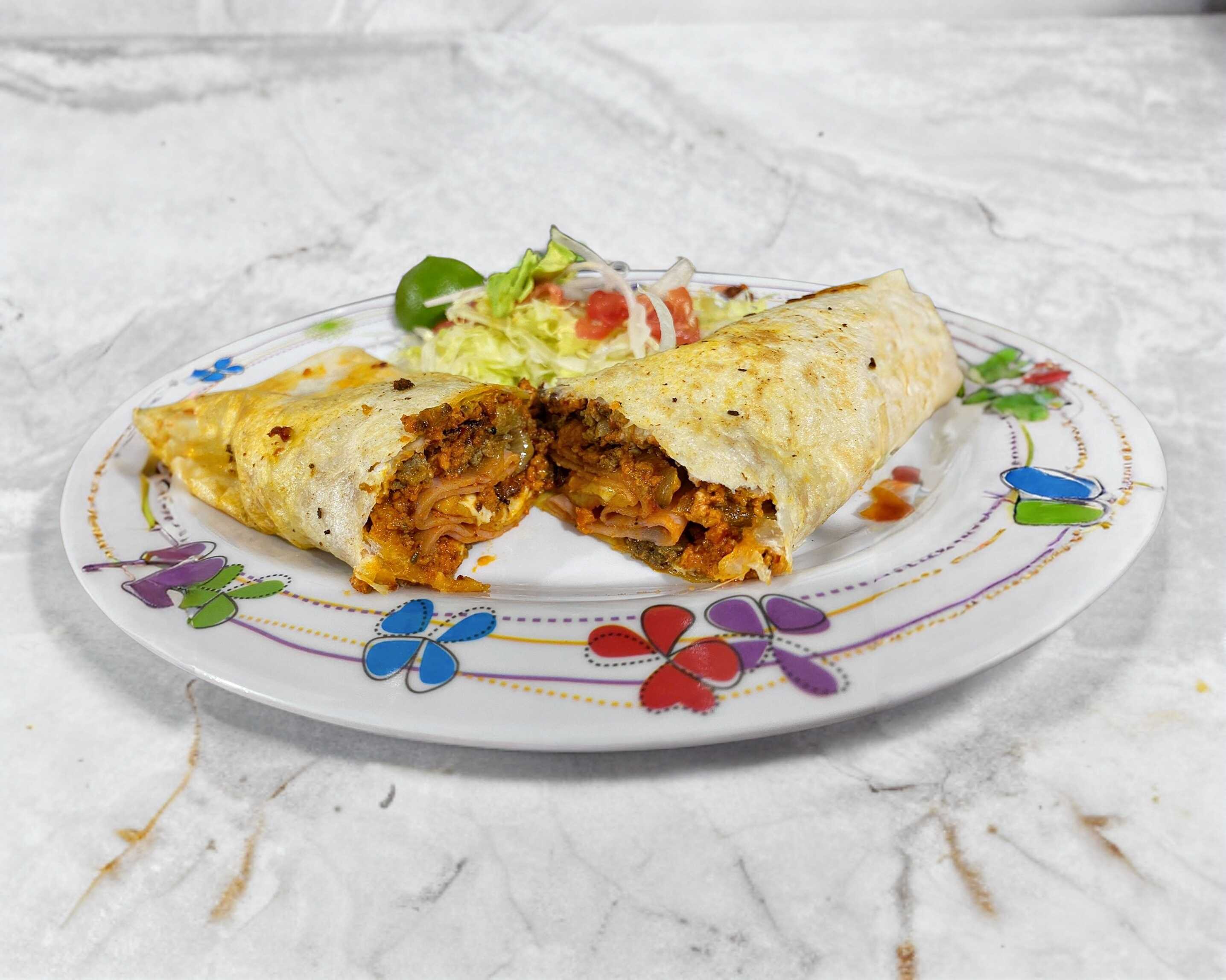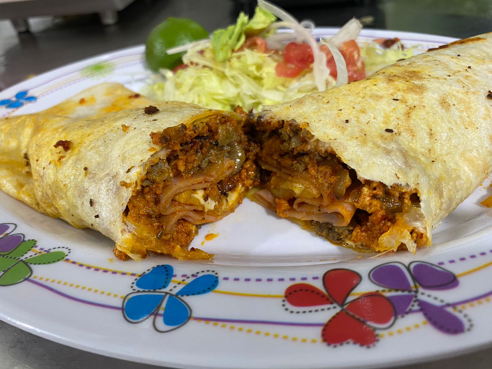 Adobada, queso blanco, aguacate, lechuga, tomate y chile.