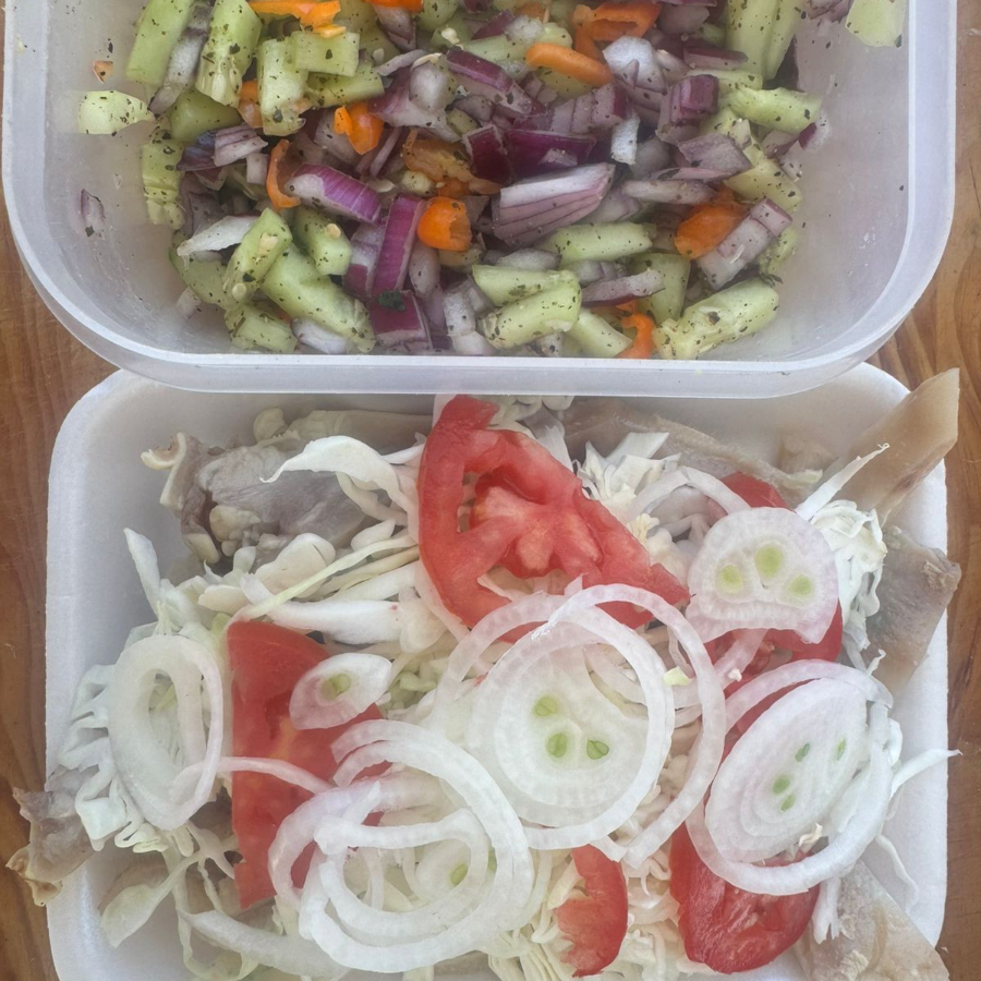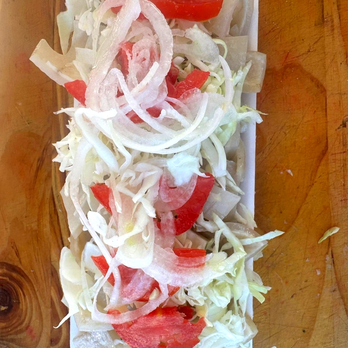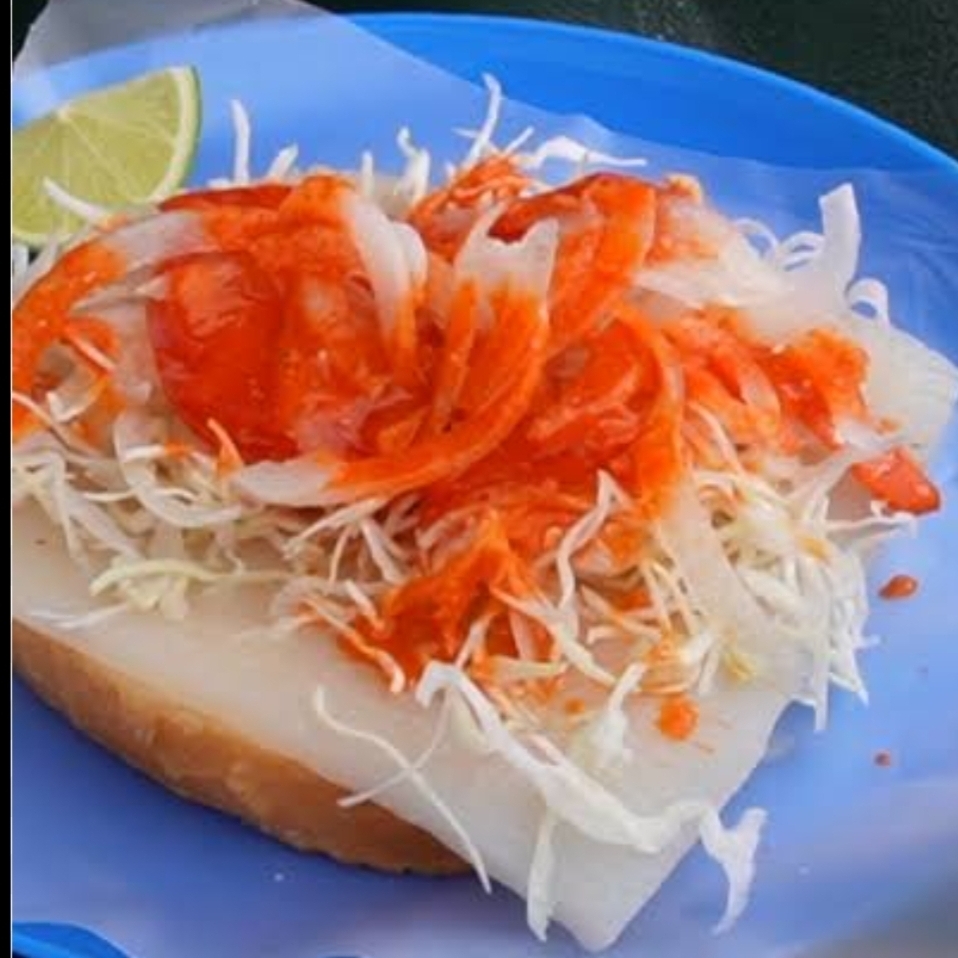 Oreja curtida repollo tomate cebolla salsa