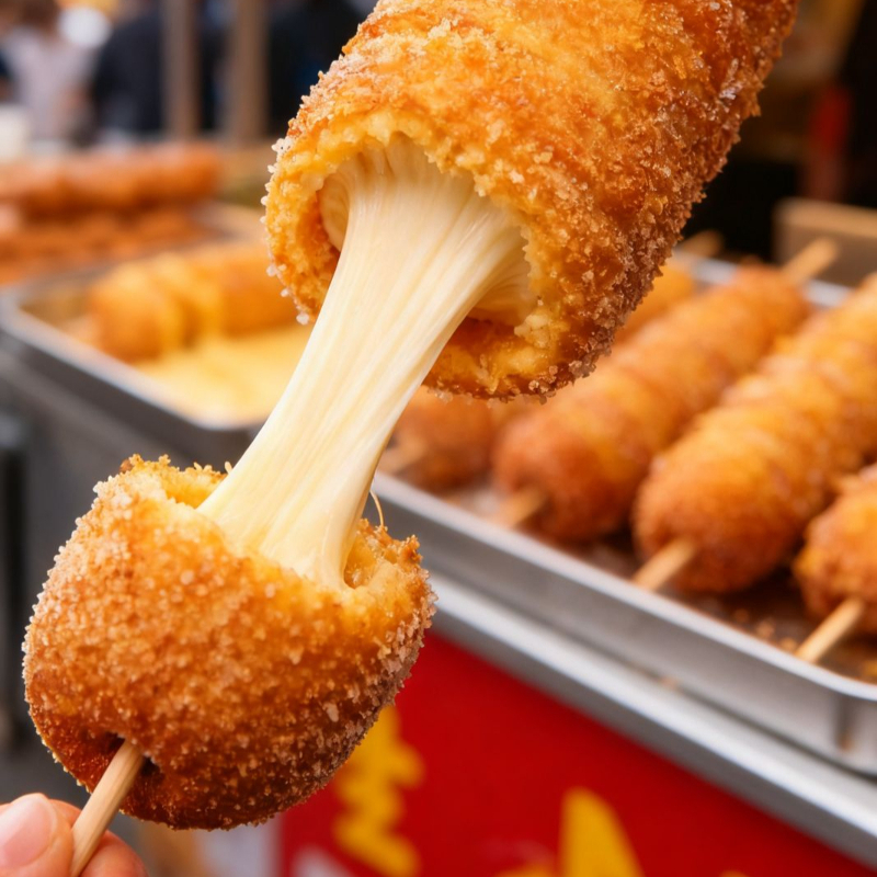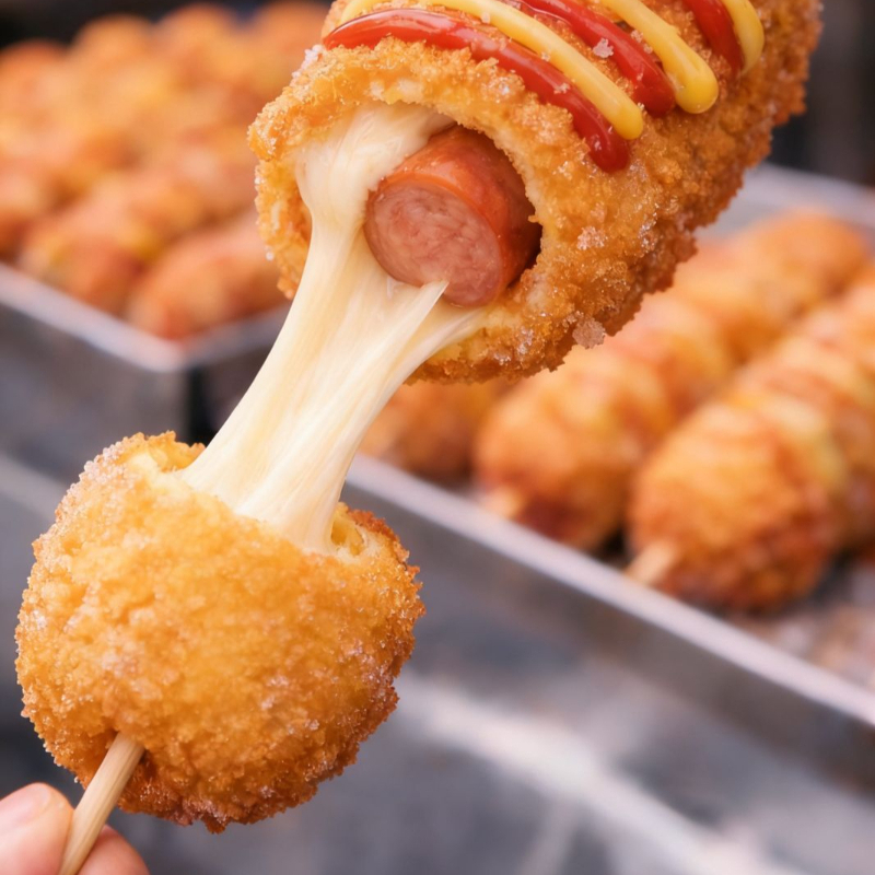 Deliciosa banderilla mixta (pavo + queso) con cubierta de papas fritas, totalmente crunchy !