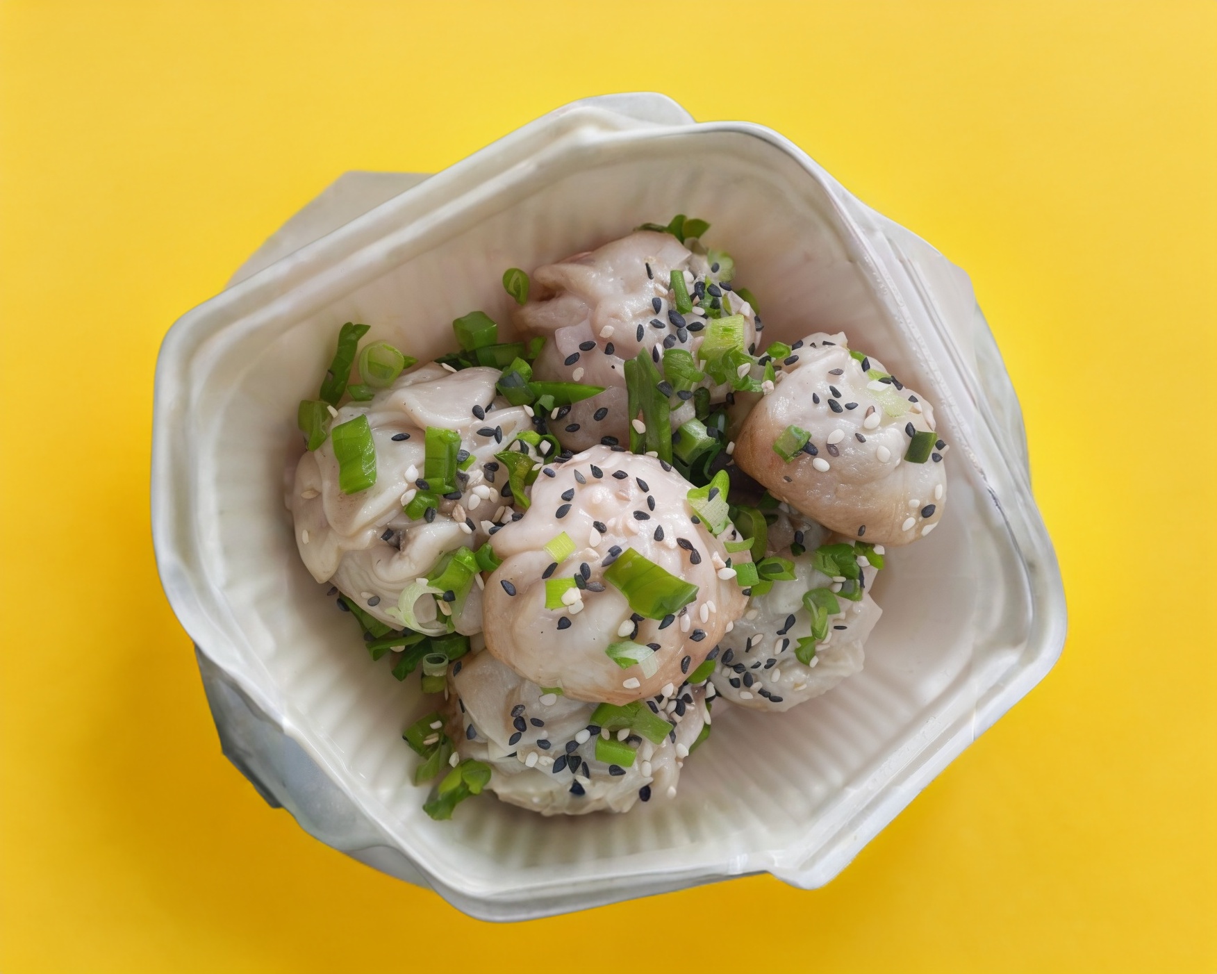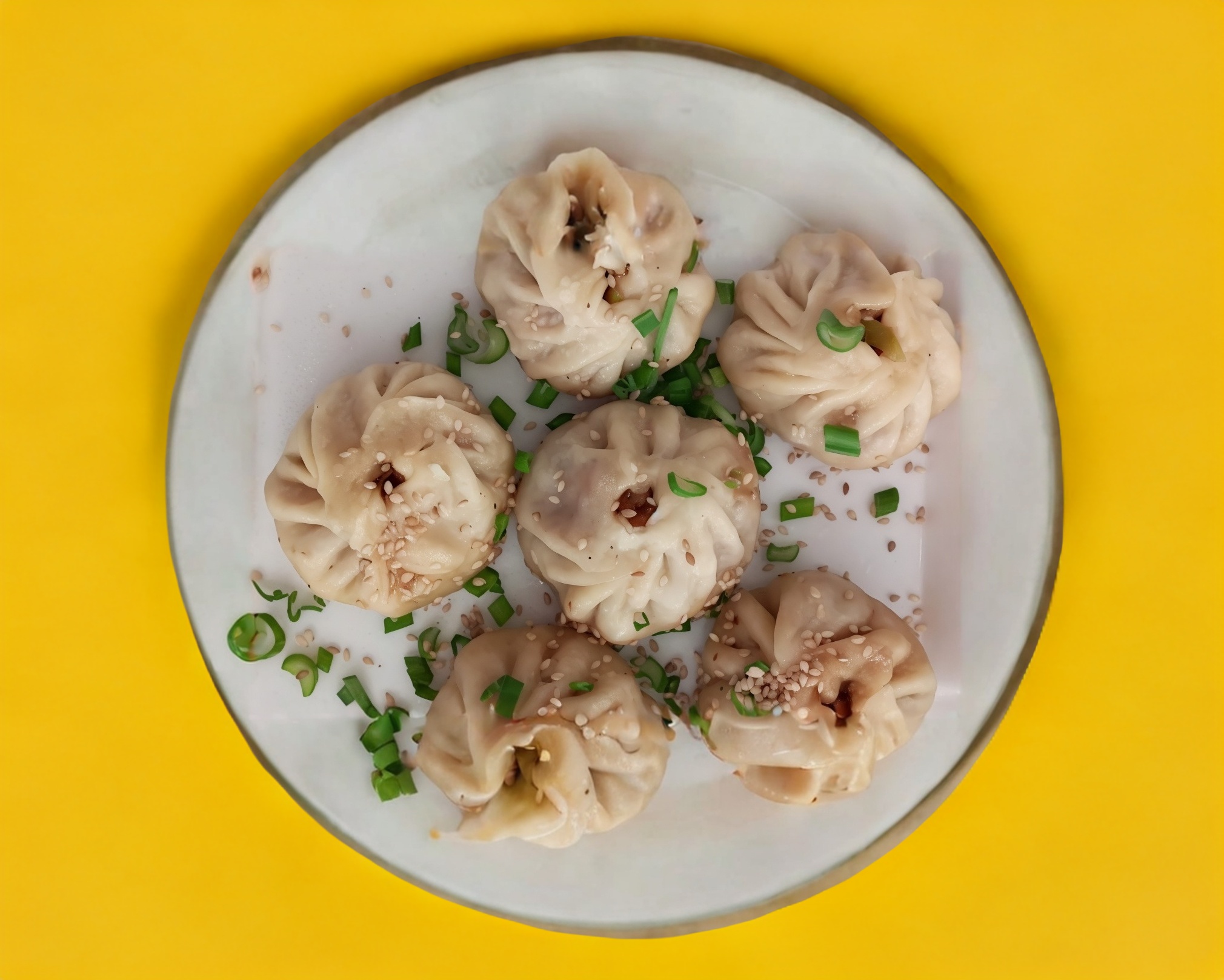 Tradicional dumpling casero chino, relleno de cerdo y cebollin picado. Cocinados al vapor.6 piezas