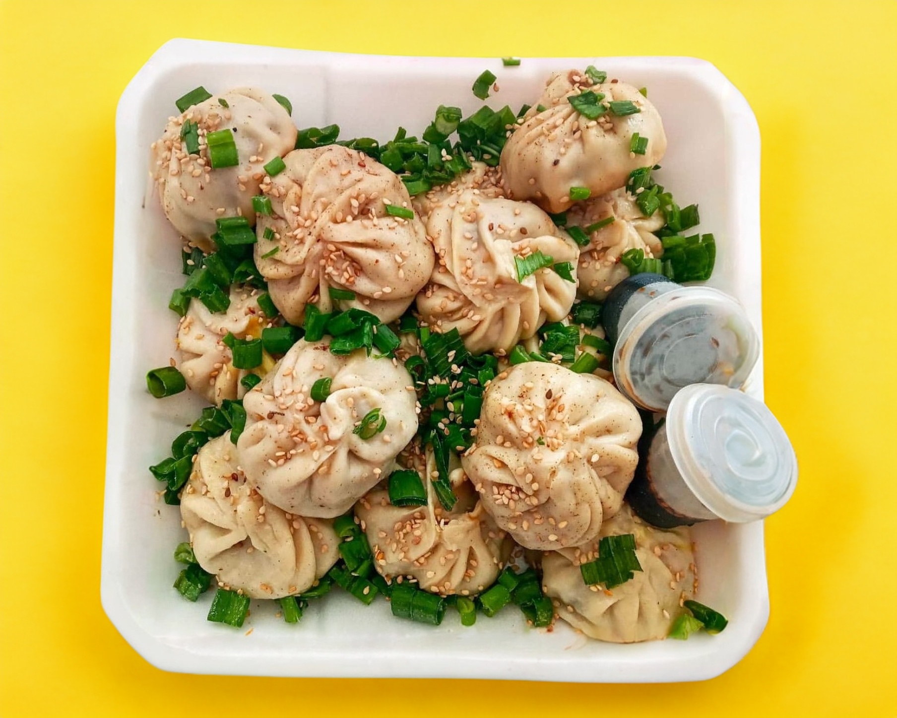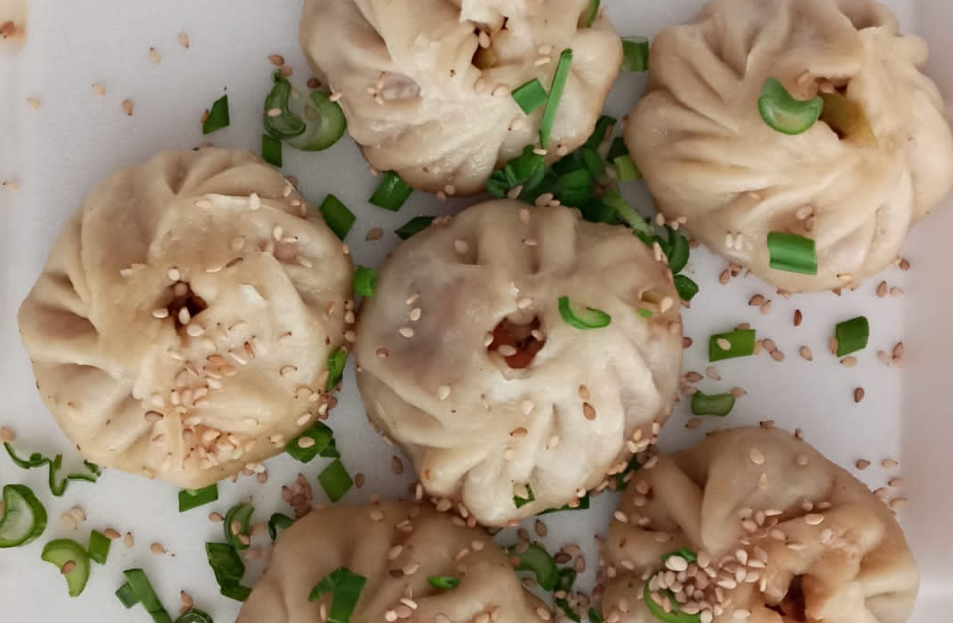 Tradicional dumpling casero chino, relleno de cerdo y cebollin. Cocinados al vapor. 12pzs