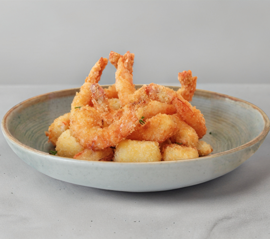 300g de Camaron, queso chihuahua en cubos y surimi fritos, acompañados de aderezo chipotle y anguila.