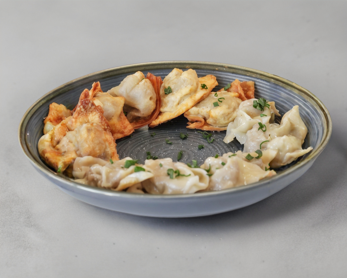 6 piezas de masa wonton tamaño bocado, rellena de tu ingrediente preferido.