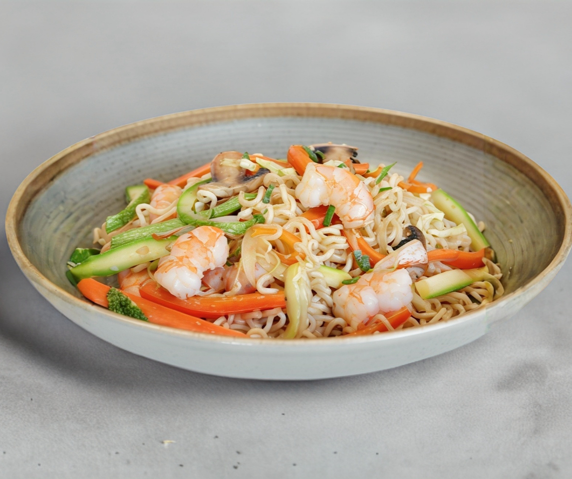 Pasta salteada con verduras y proteína a elegir, bañada en una salsa especial. Incluye salsa de soya.