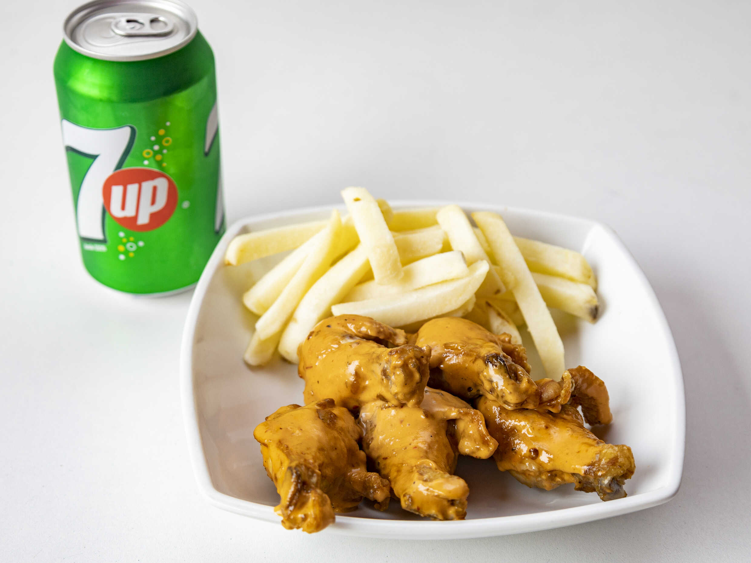 250g de alitas + acompañamiento + refresco (355 ml)