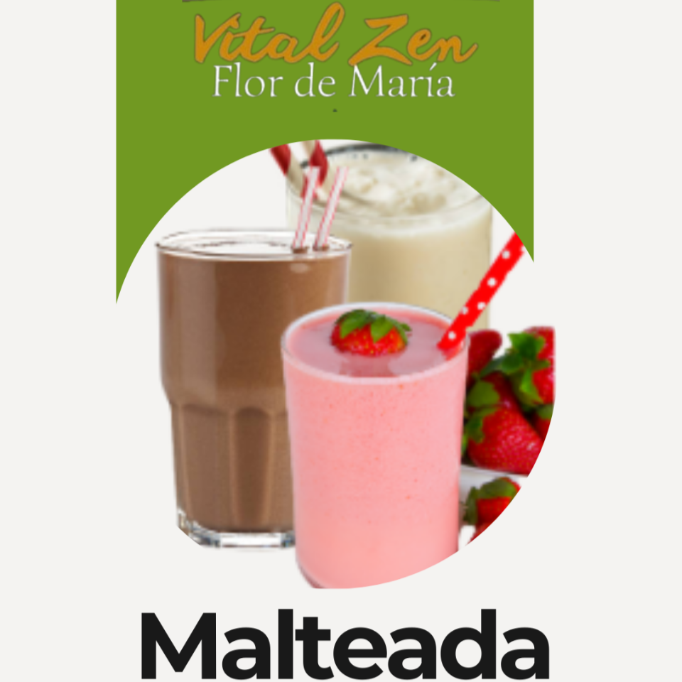 Malteada sabor vainilla con platano, contiene vitaminas y minerales