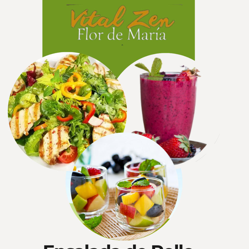 acompañado de vegetales (aguacate, lechuga, espinacas, tomate y pepino), y aderezo de chiplote