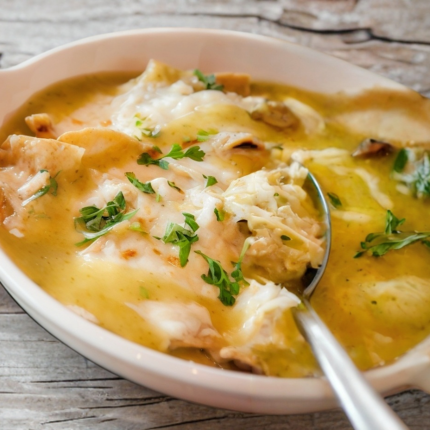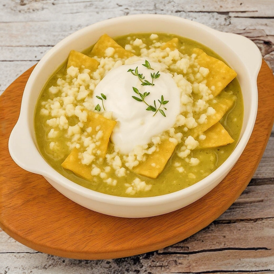 Producto exclusivo de plataforma: Tradicionales totopos crujientes, bañados en salsa verde poblana cremosa, sobre una cama de frijoles de la olla, gratinados con queso y un poco de crema.