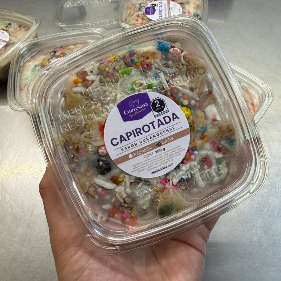 Tradicional Capirotada de un kilo bañada en Piloncillo.