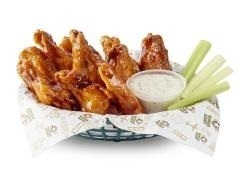 350 g de Deliciosas Alitas ( Se pesan en crudo) con salsa y un Dip a elegir.