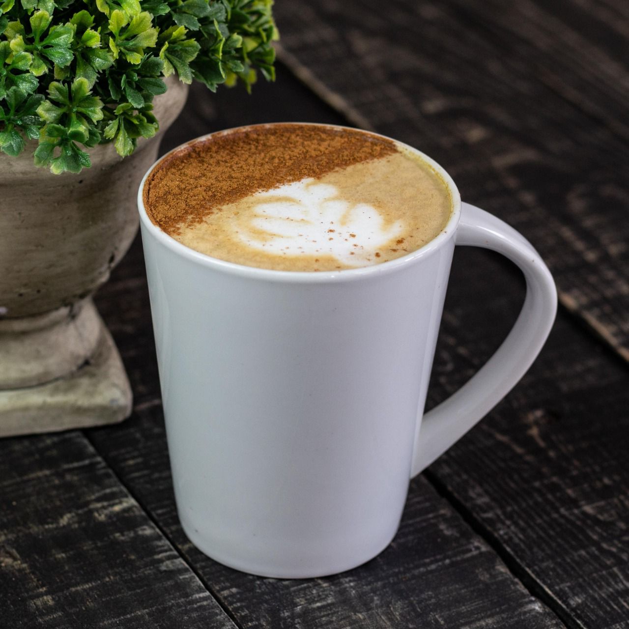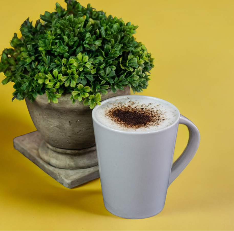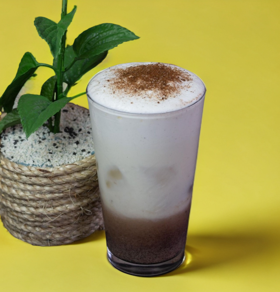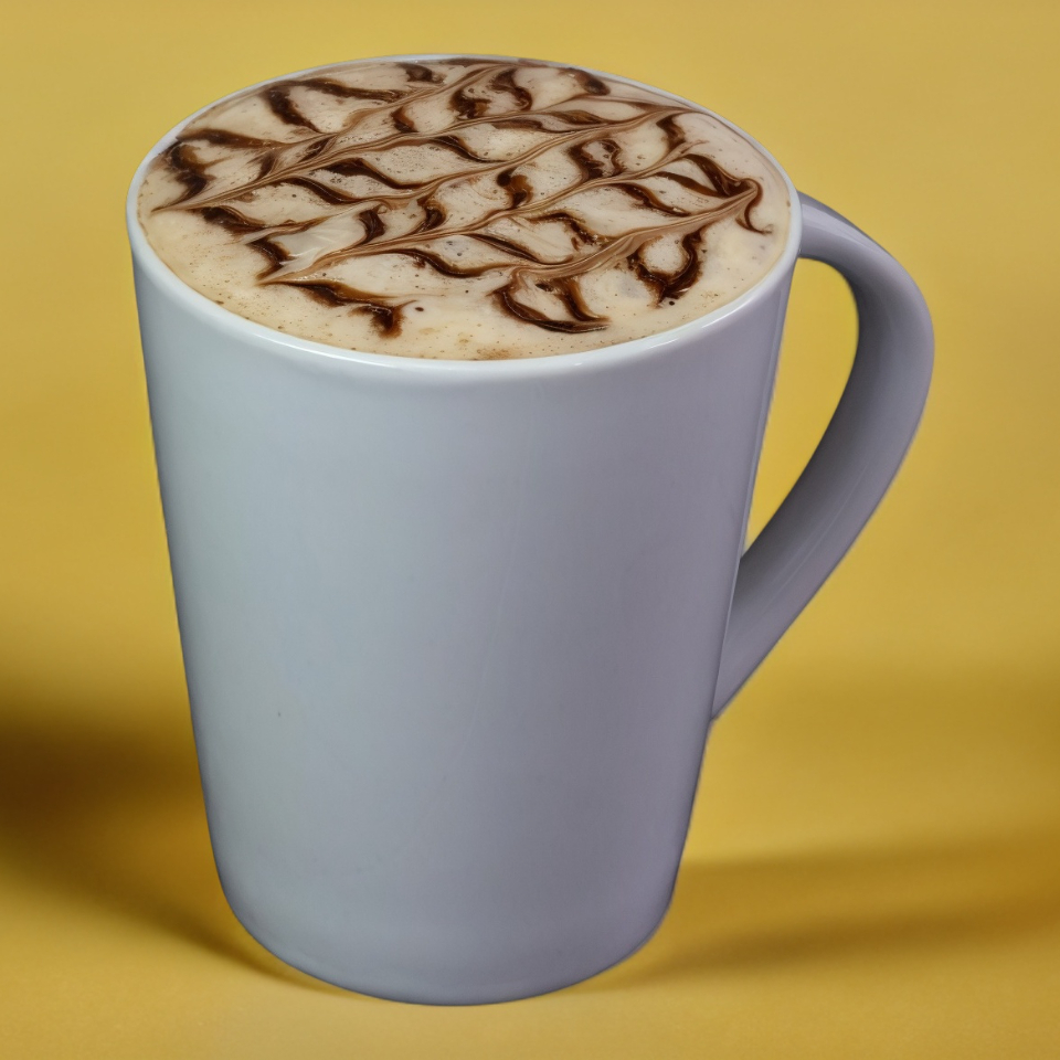Bebida caliente y espumosa a base de cacao blanco.