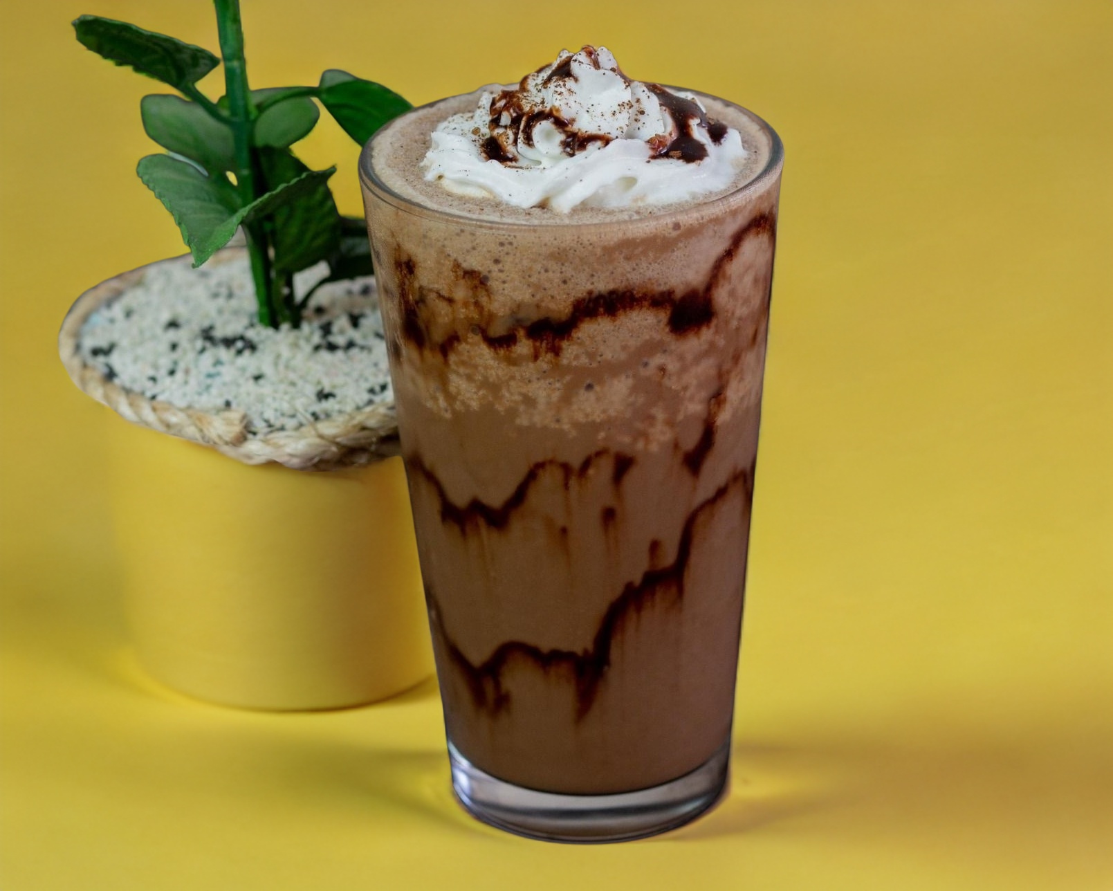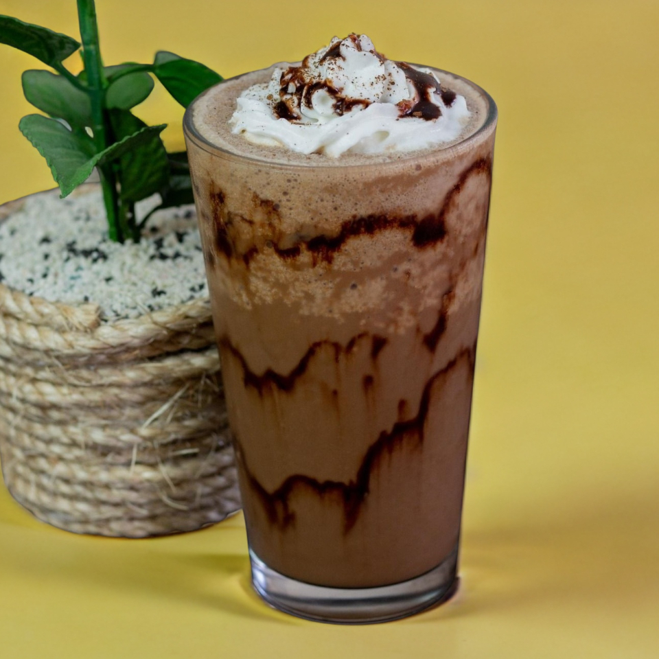 Bebida a base leche y cacao de tu elección servida con hielos