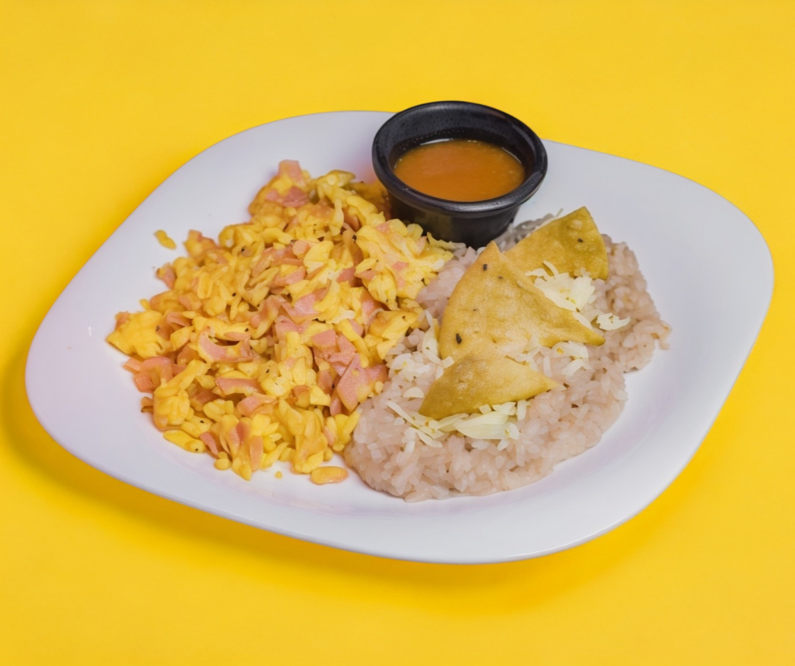 Especialidad de la casa, son dos huevos estrellados montados en una tortilla frita acompañados de pierna de cerdo bañados en salsa de la casa , acompañados de frijoles refritos y media porción de chilaquiles con salsa de tu preferencia.
