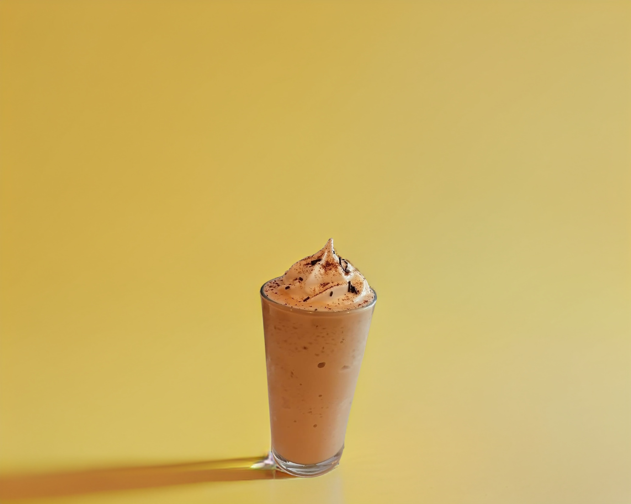 Bebida a base de leche, café, helado y hielos triturado a punto de nieve decorado con crema batida