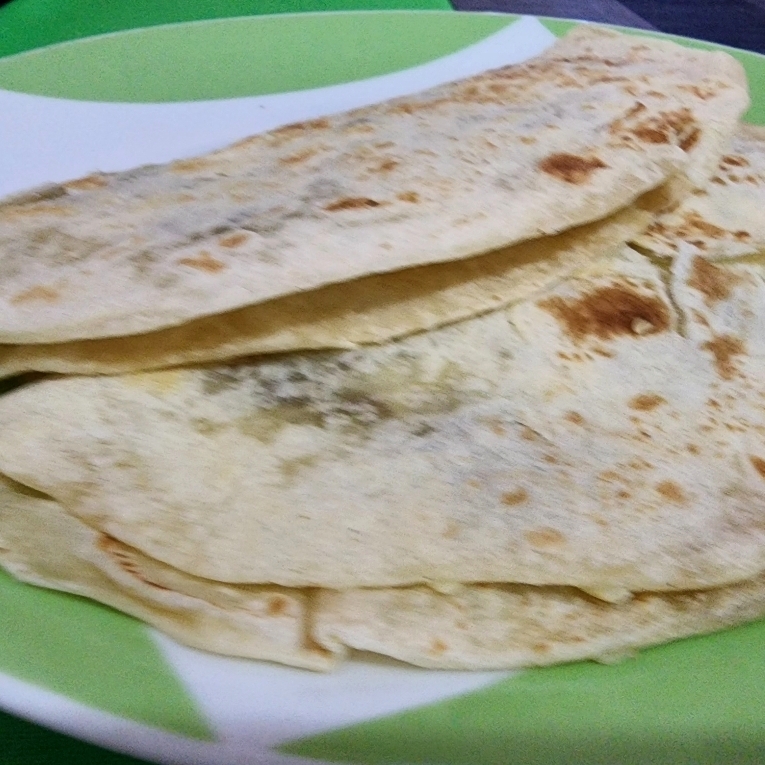 Tortilla de harina doblada a la mitad, rellena de queso y un guiso a su eleccion