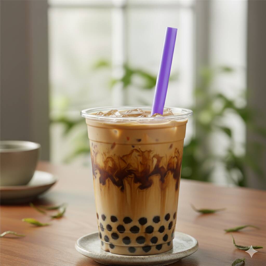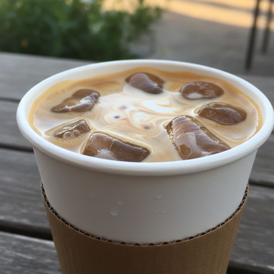 Café con leche frío, servido sobre cubos de hielo 16oz
