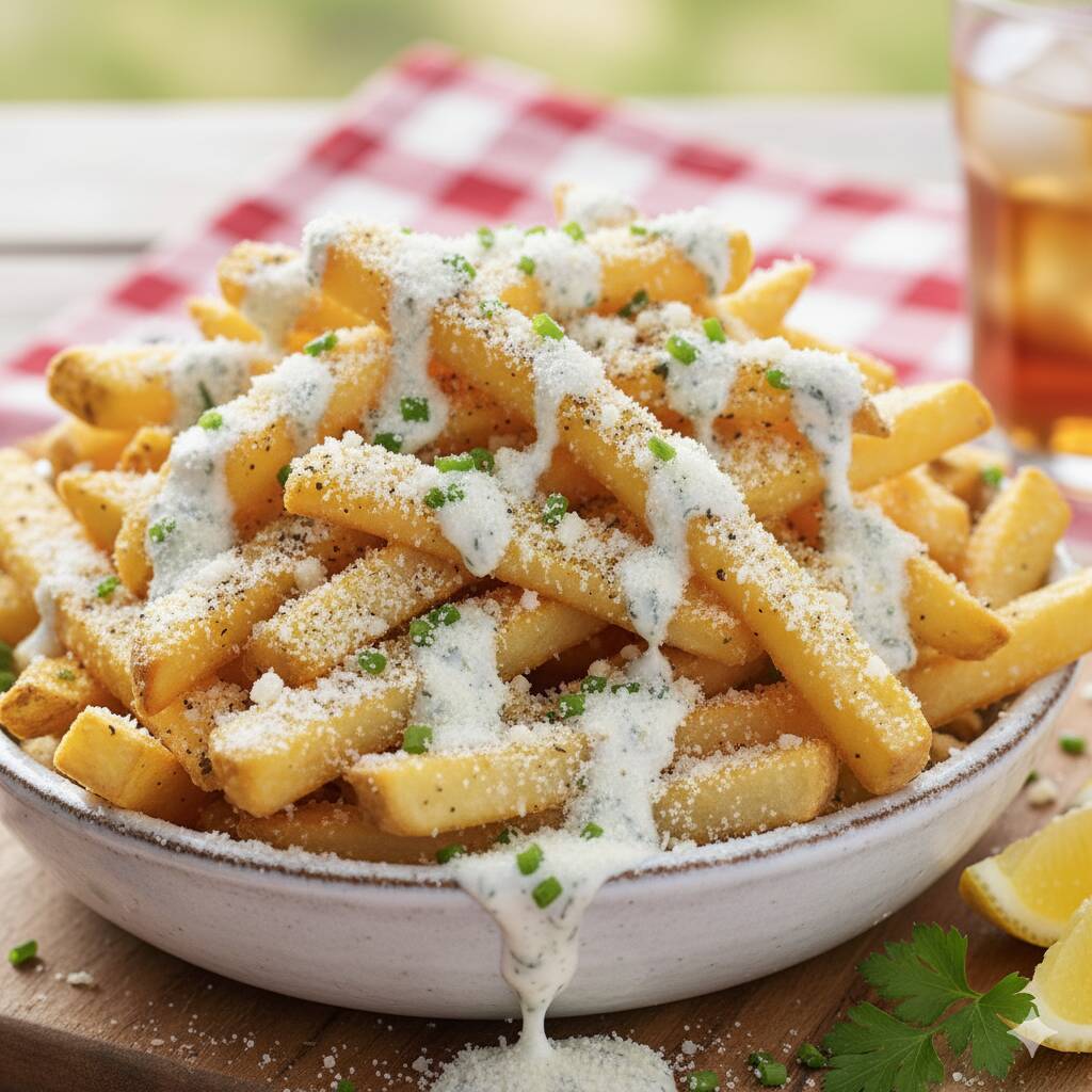 Papas a la francesa sazonadas con lemon pepper, queso parmesano y un adereso ranch de 60ml.