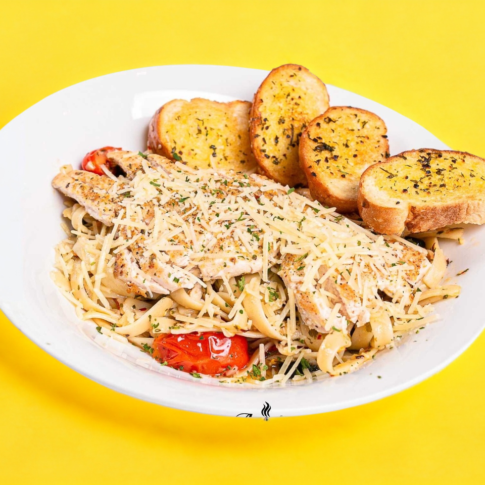 Acompañados de pechuga de pollo a la plancha y pan de la casa.