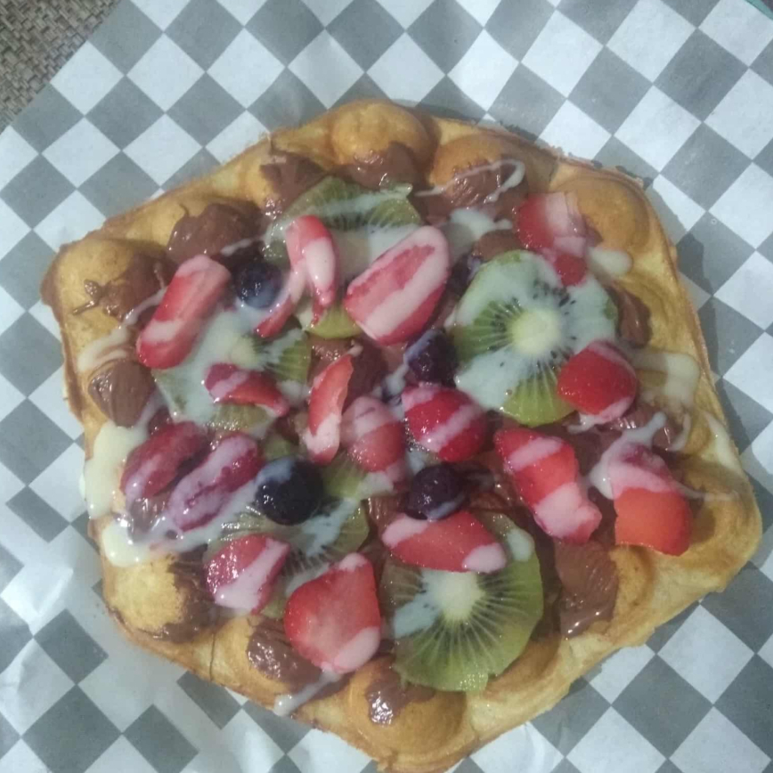 Waffle con toppings de frutas y sirope (2 de cada uno)