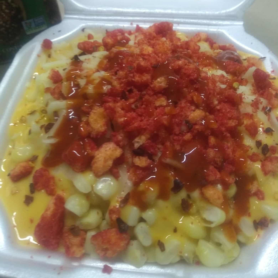 Deliciosos elotes cocidos desgranados, papitas y topping de tu eleccion