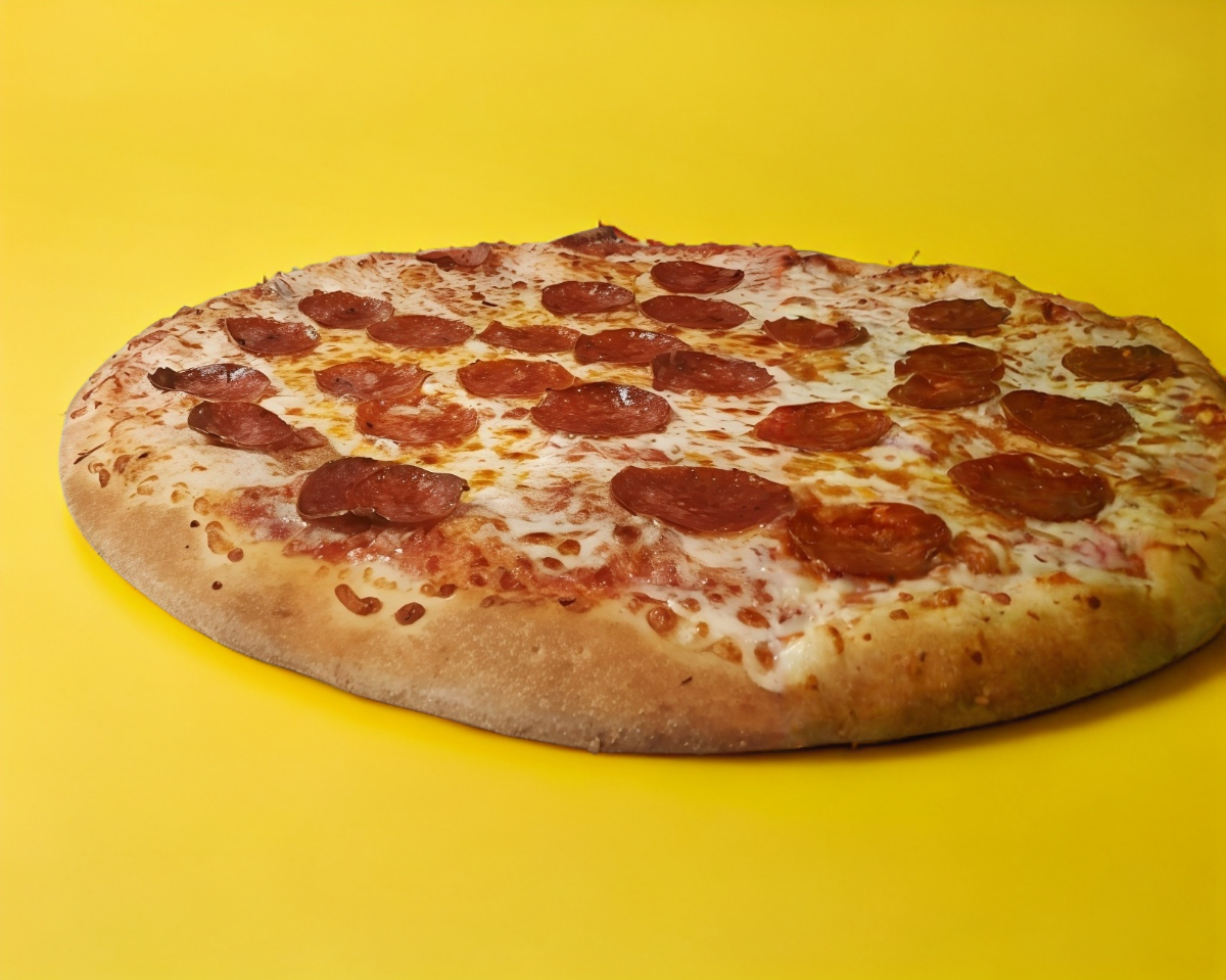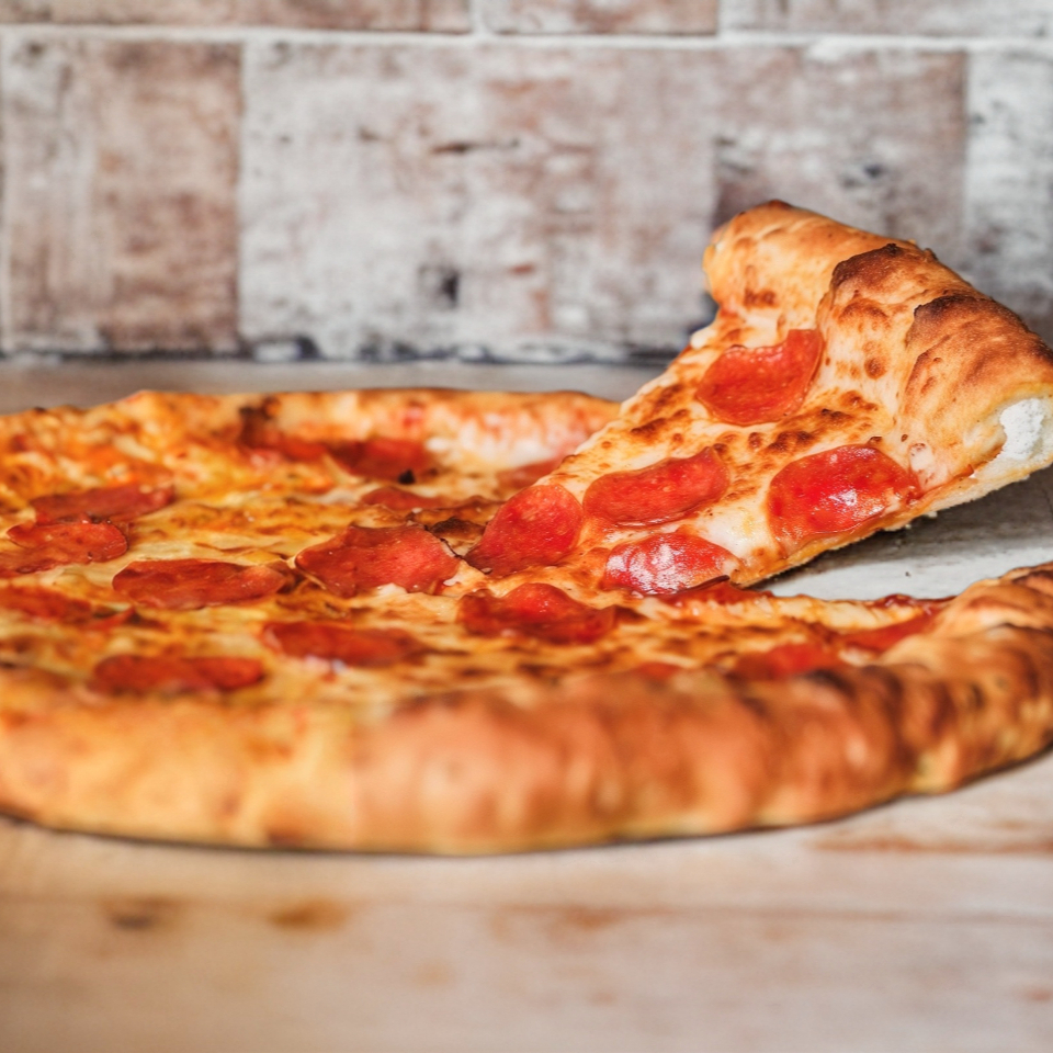 Masa de la casa, salsa de tomate, queso mozarella, peperoni con orilla Philadelphia.