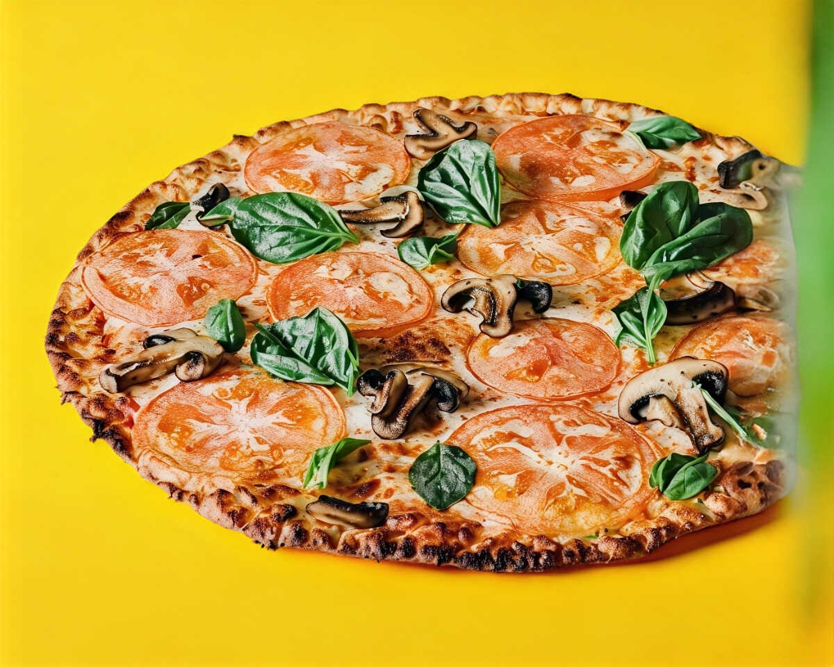 base tomate queso mozzarella, chicharrón crujiente, tocino, cebolla morada y jalapeños.