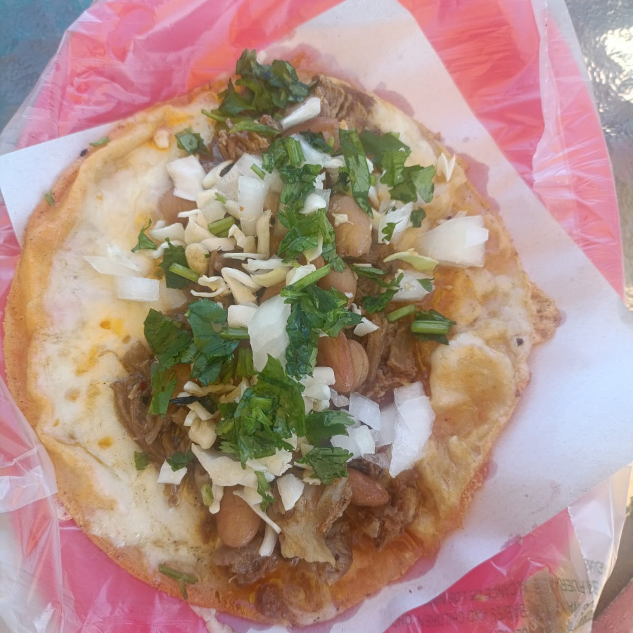 TORILLA DORADA/CARNE/QUESO DERRETIDO/VERDURA/FRIJOL/CHICHARRON