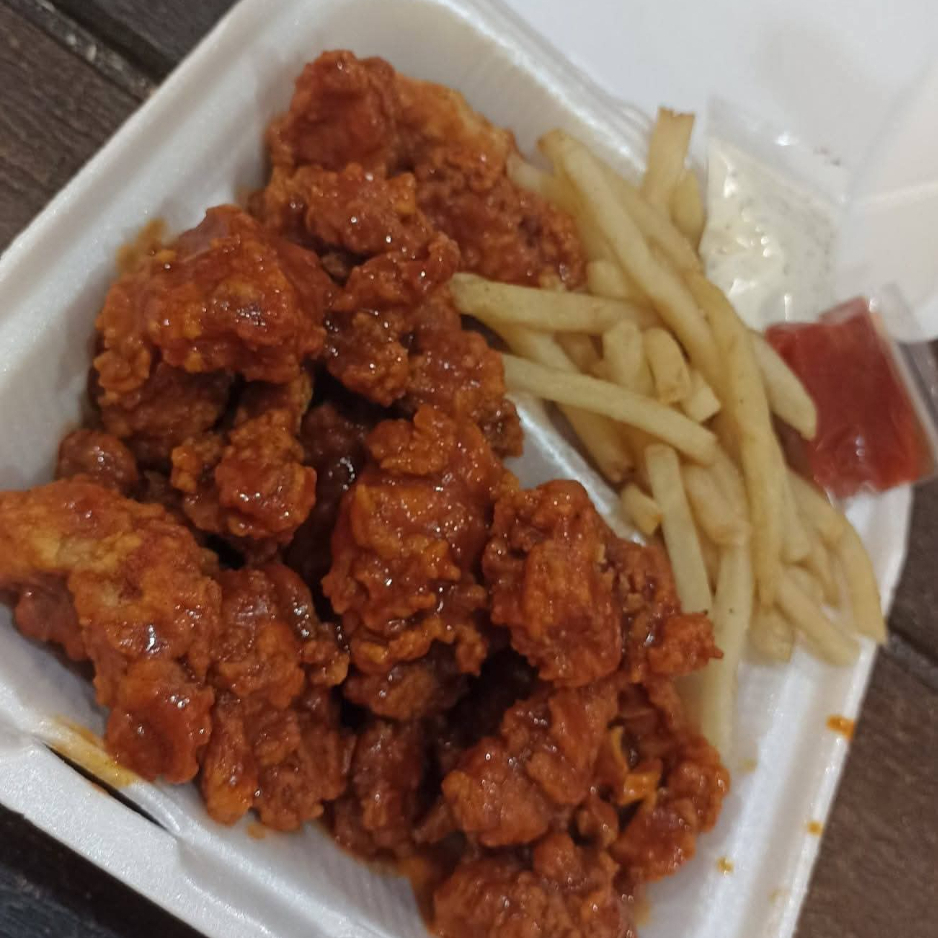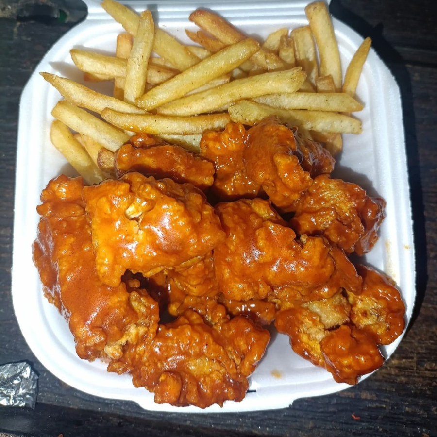 BONELESS EN SALSA BUFALO CON PORCION DE PAPAS