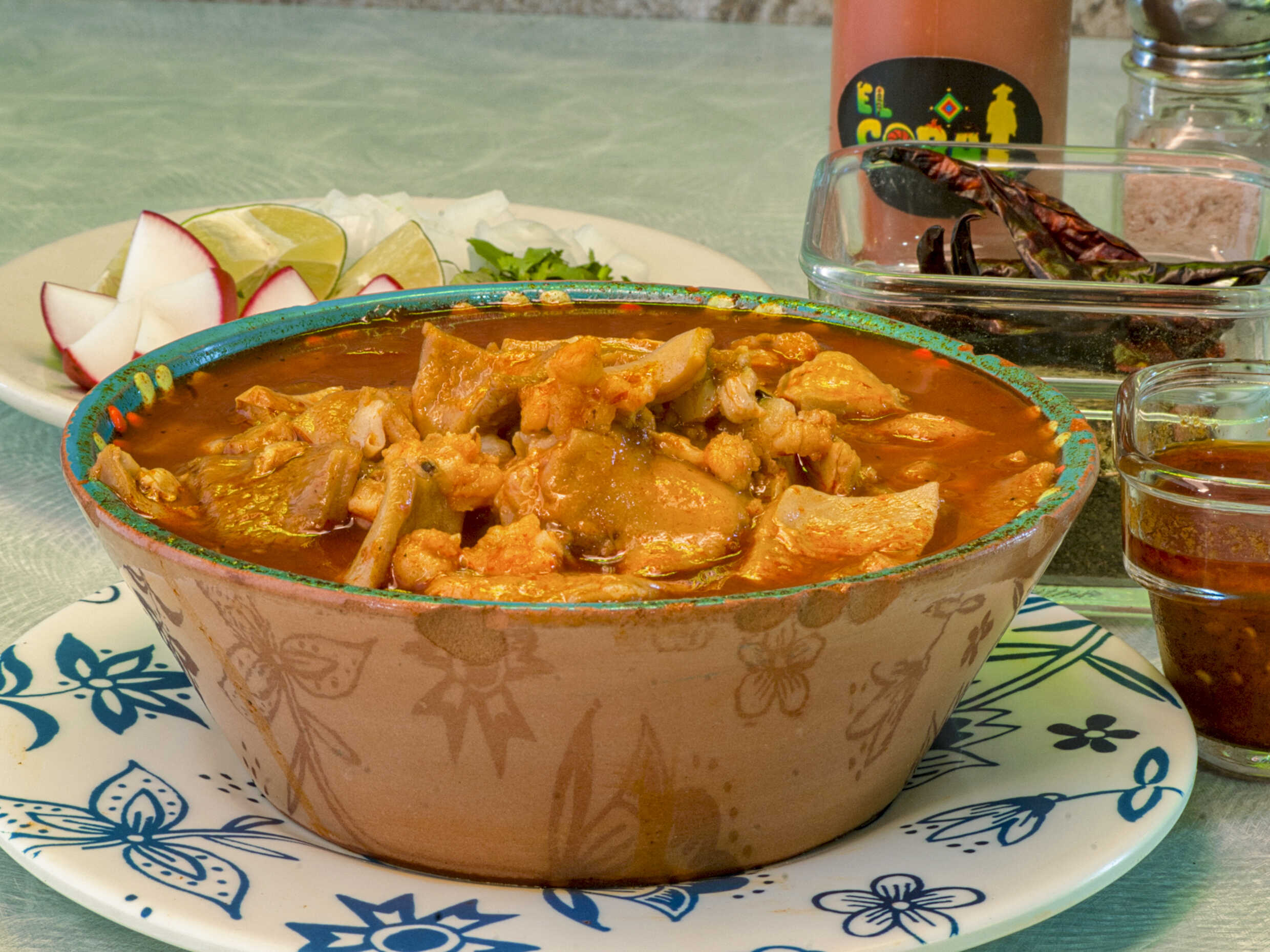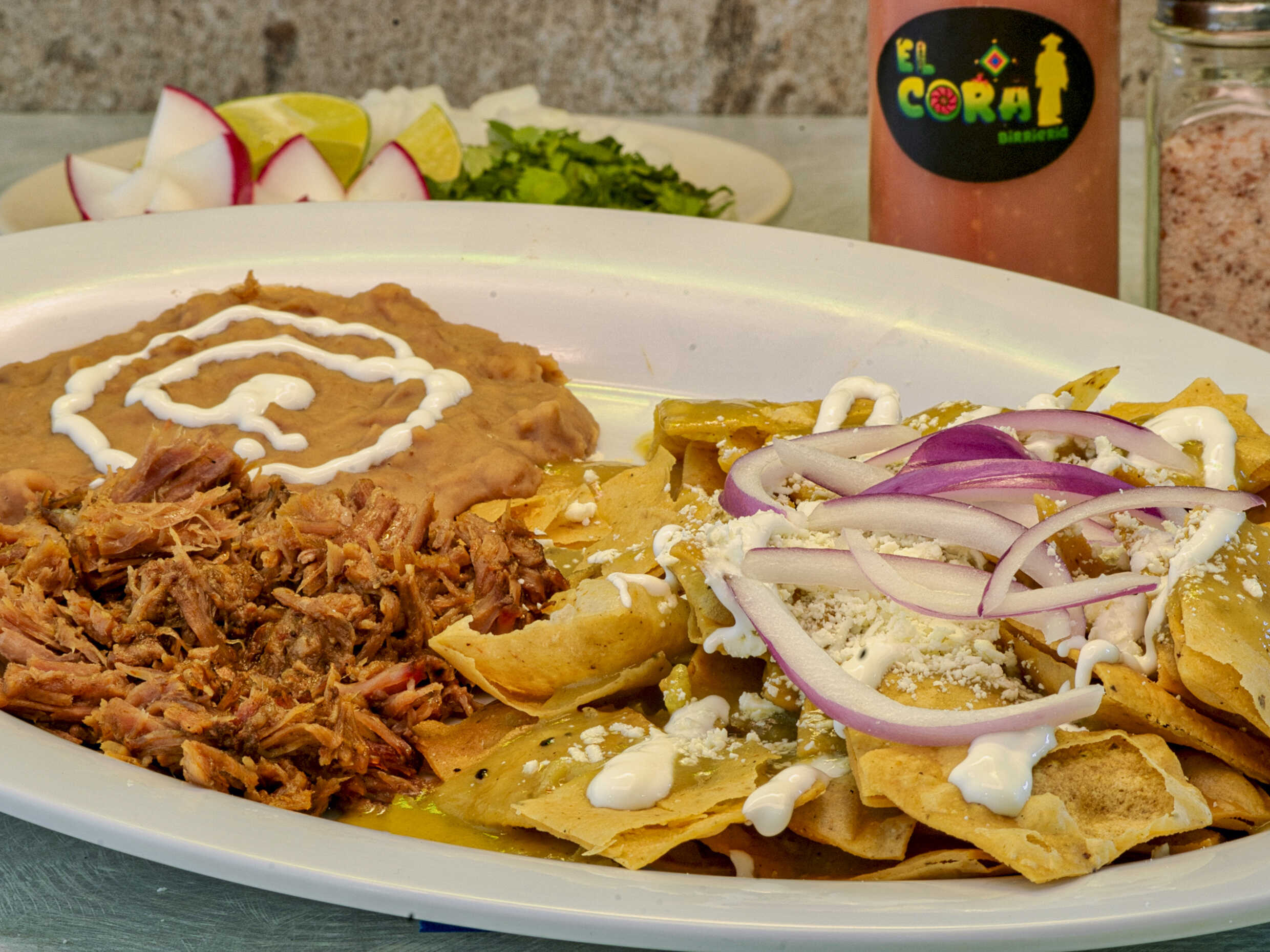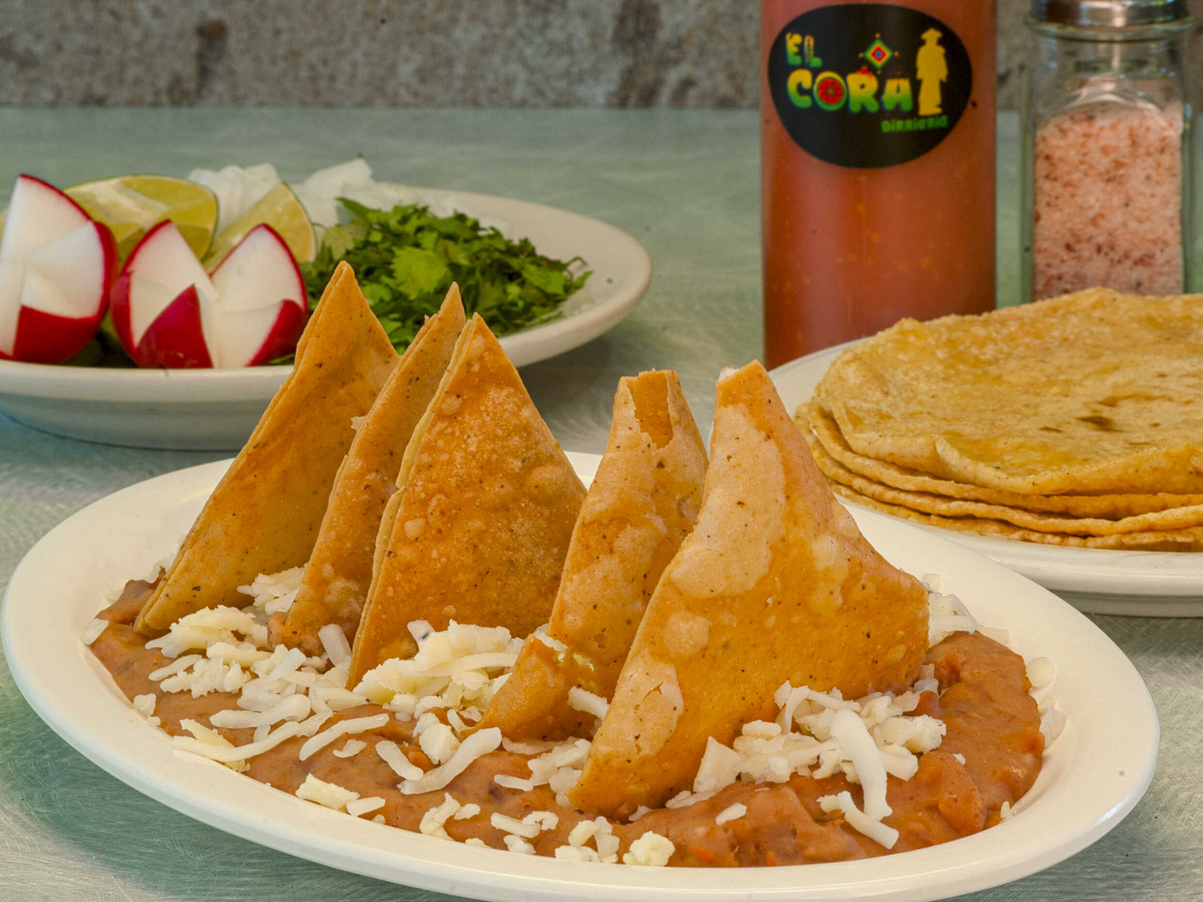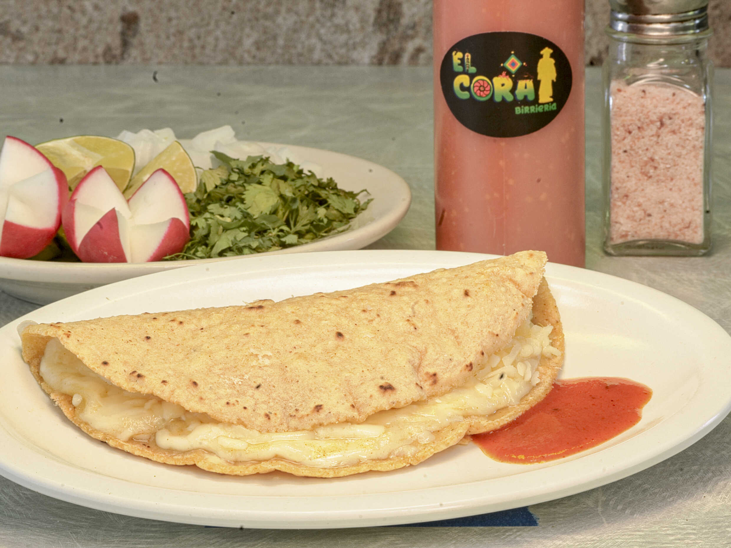 en vaso de 32 oz acompañado con verduras, salsa y 6 tortillas.