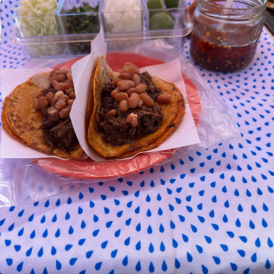 DOS TACOS DE BIRRIA DE RES CON TORTILLA BLANDITA CON GRACITA Y CONSOME VASO DE 12onz. CEBOLLA , REPOLLO ,CILANTRO Y SALSA DE CHILE DE ARBOL
