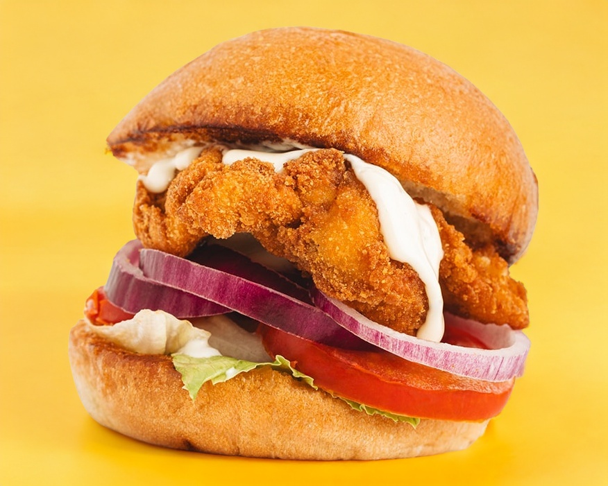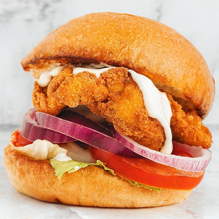 Aderezo ranch, lechuga, tomate, cebolla y chicken tenders hechos en casa .155gr en crudo. Incluye catsup y servilletas.