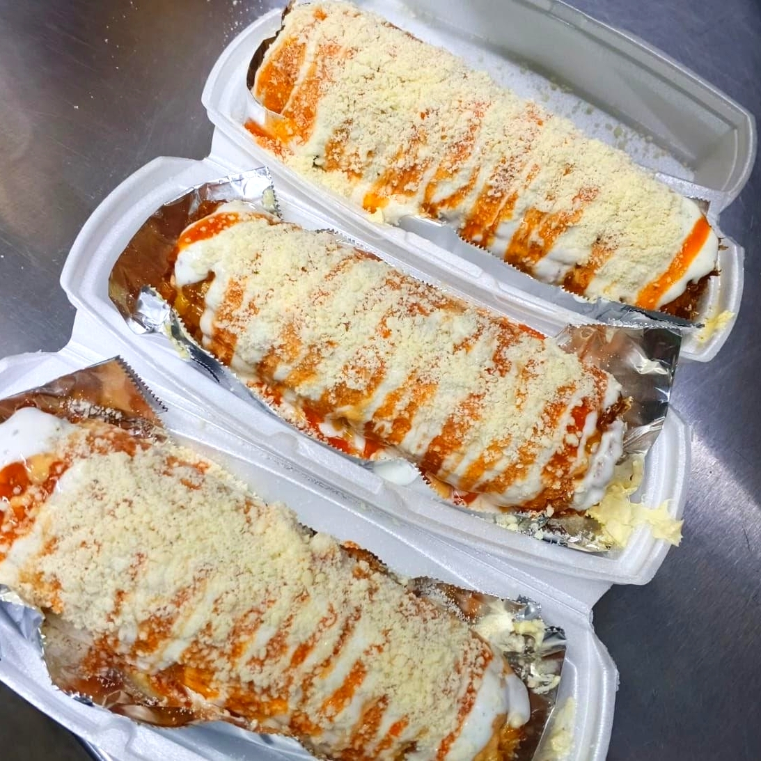 Elote con mantequilla, queso parmesano ranch y bufalo