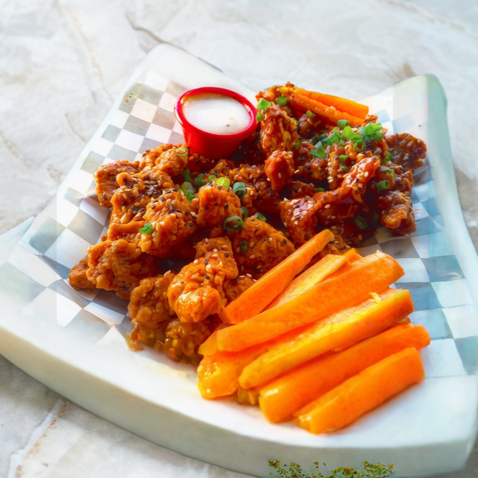 (Peso de producto en crudo 800grs) Ideal para 2 personas. ¡Las mejores boneless de ensenada! Incluye una pequeña porción de zanahoria y/o apio. Incluye 2oz de ranch.