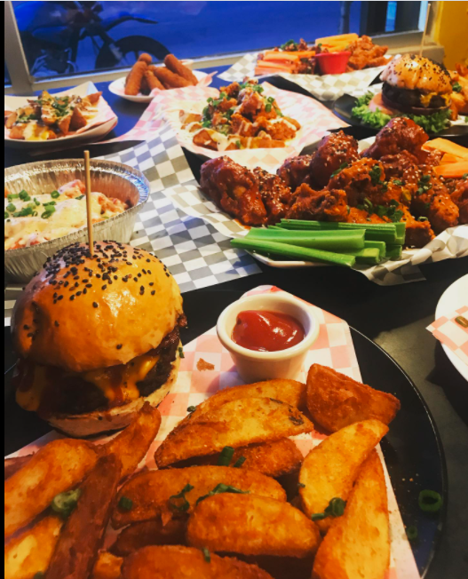 La hamburguesa de boneless, tocino, ranch, lechuga, tomate, cebolla y aderezos. Elige tu salsa favorita. La burger de la casa tenía que ser de boneless.