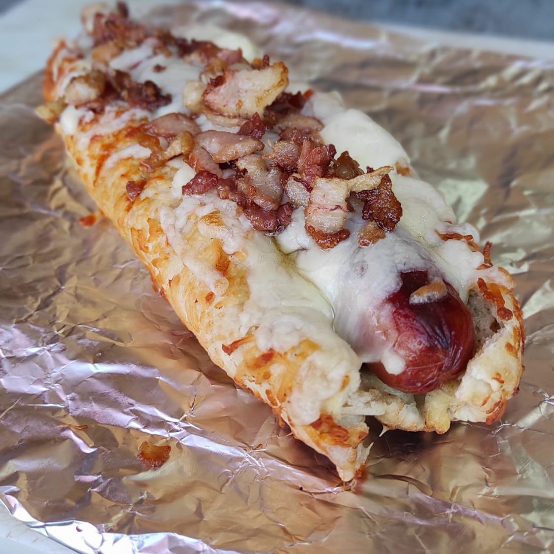 Chickenbake, 1/4 de libra de salchicha de res , tocino,queso Monterrey