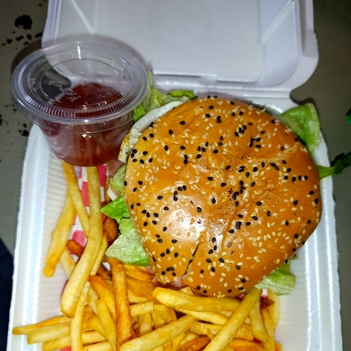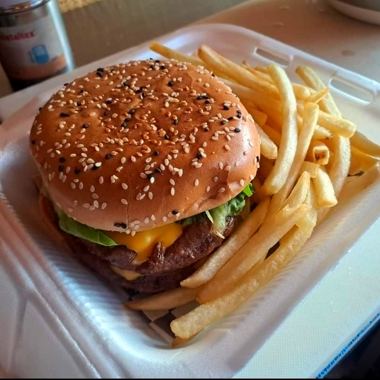 Hamburguesa Clásica C/Papas + Soda (Pepsi o Sabor)