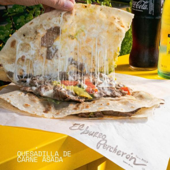 Queso monterrey con carne asada (todas nuestras quesadillas incluyen aguacate y tomate)