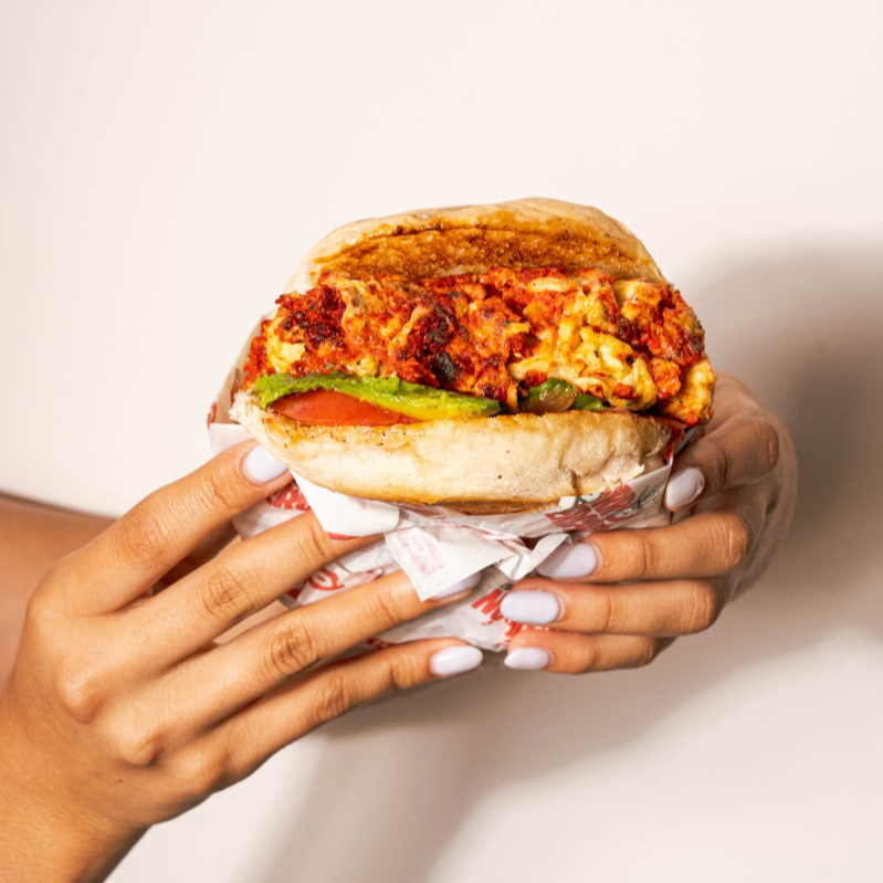huevo con chorizo de cerdo (todos nuestros burros y tortas tienen base de mayonesa aguacate y tomate)