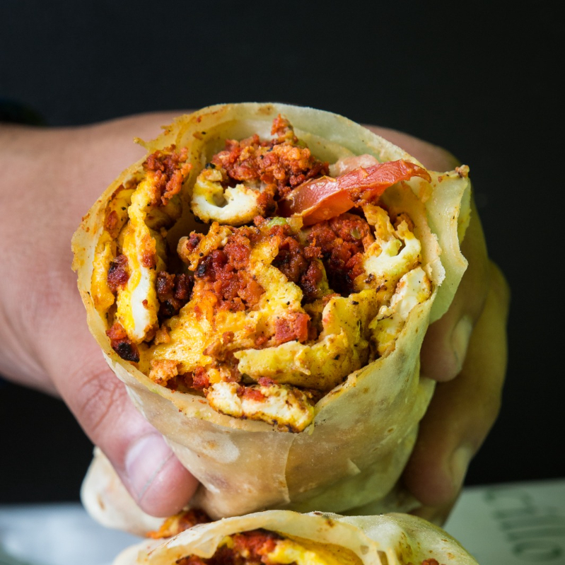 Huevo con chorizo (todos los burros incluyen base de mayonesa aguacate y tomate)