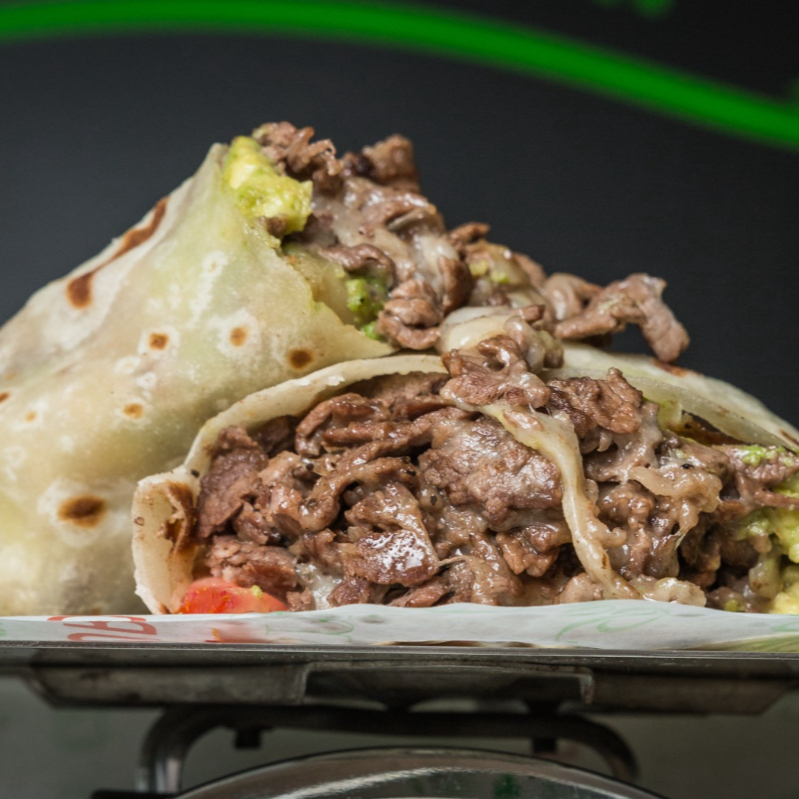 Carne asada con queso monterrey 1/2 kilo de sabor en nuestro burro grande (todos nuestros burros y tortas tienen base de mayonesa aguacate y tomate)